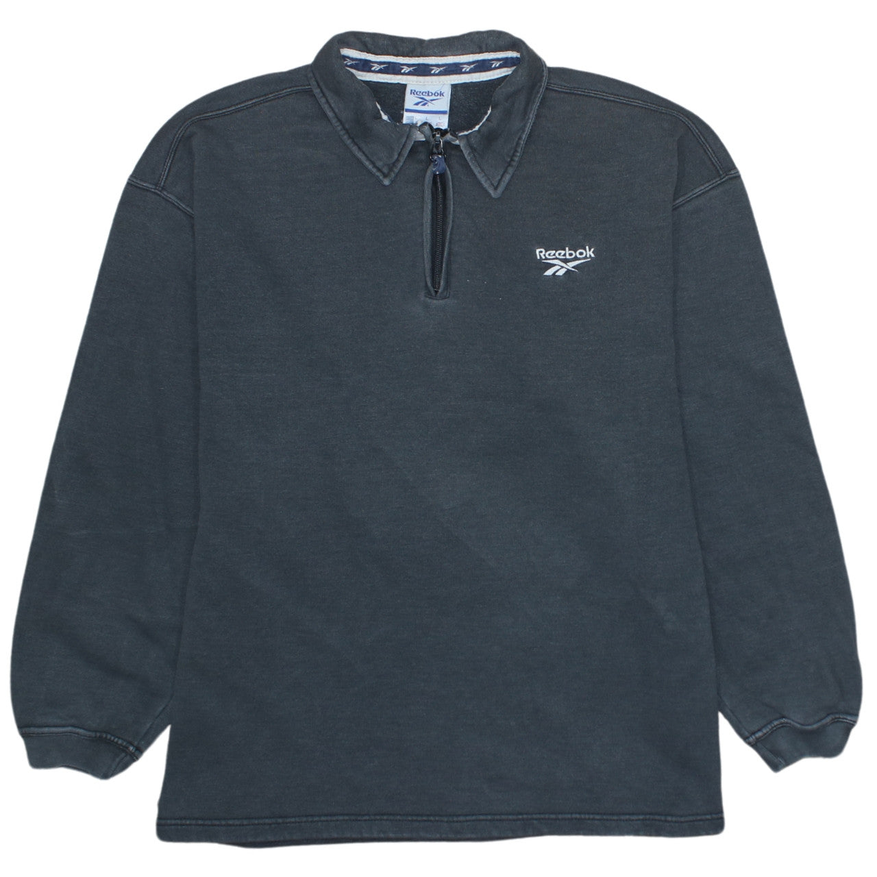 Reebok Mens Black L Sweatshirt 1/4 Zip Collared Retro Sportswear