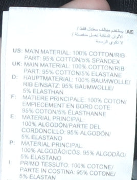 - Material Breakdown: 100% Cotton 95% Cotton 5% Elastane