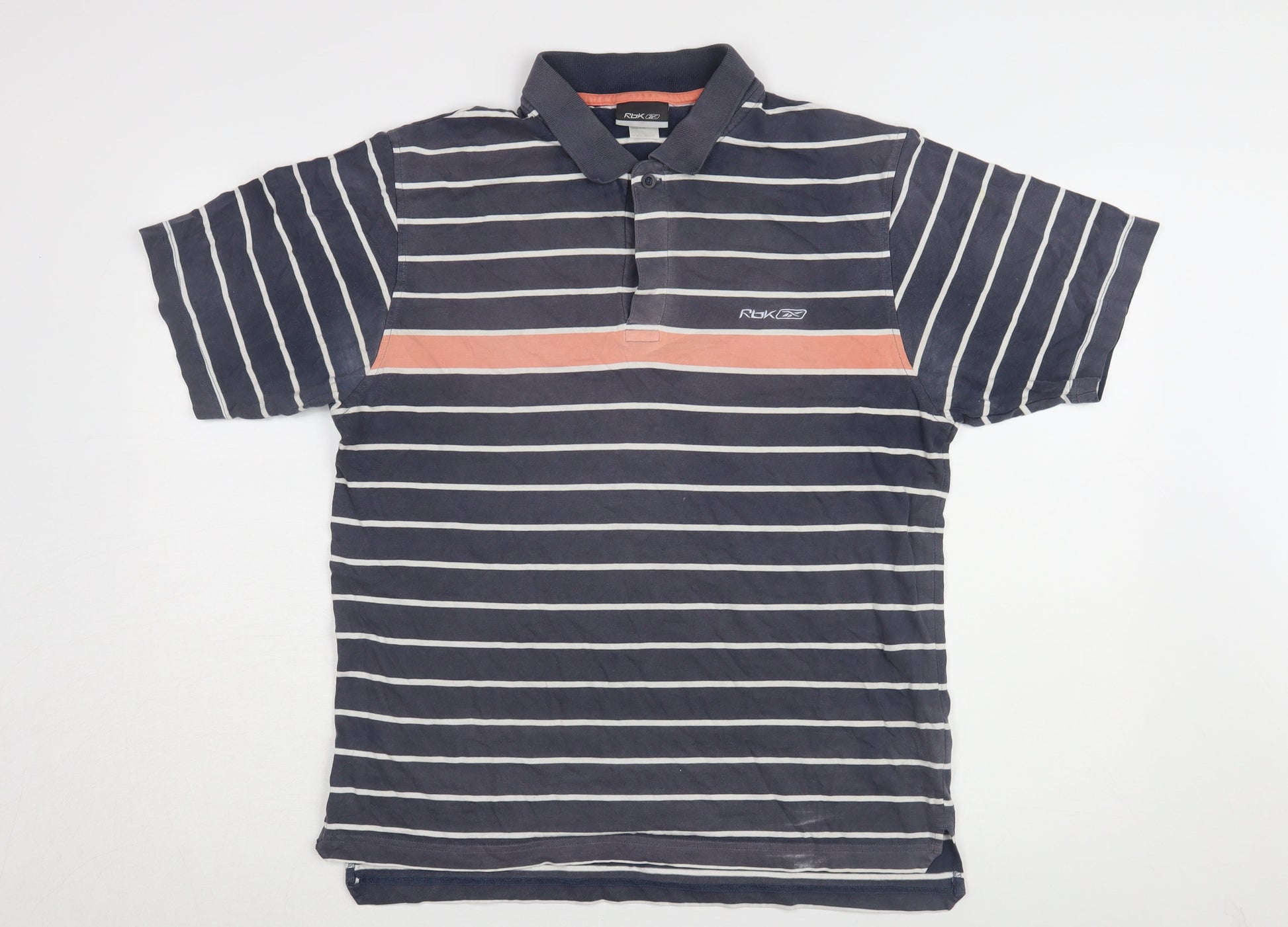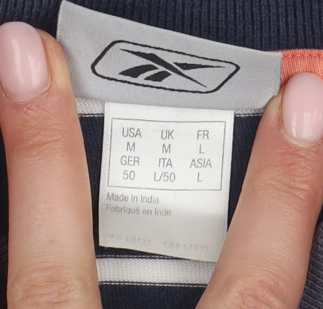 Reebok Men's Blue Striped Polo L Regular Fit