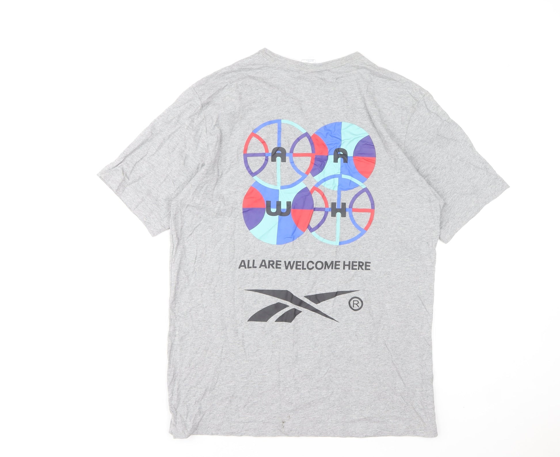 Reebok Men's Grey Graphic Print Crew Neck Short Sleeve T-Shirt Size S