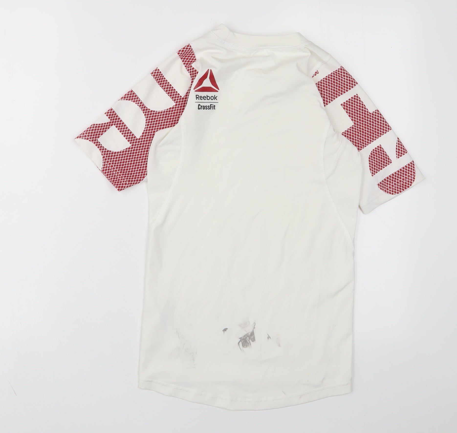 Reebok Mens White Nylon Basic T-Shirt Size M Crew Neck Pullover