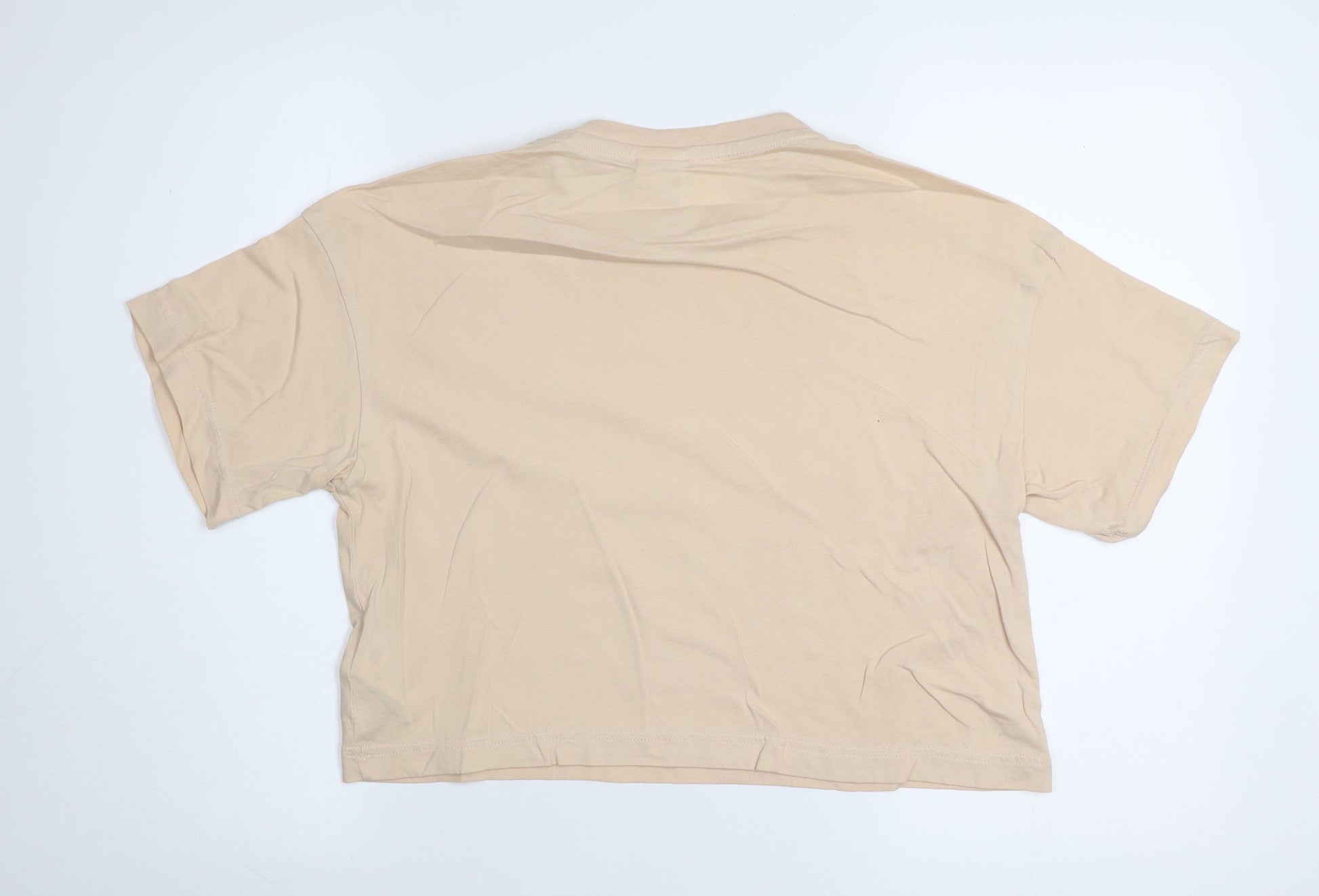 Reebok Women Beige Cropped T-Shirt S Short Sleeve Casual Top
