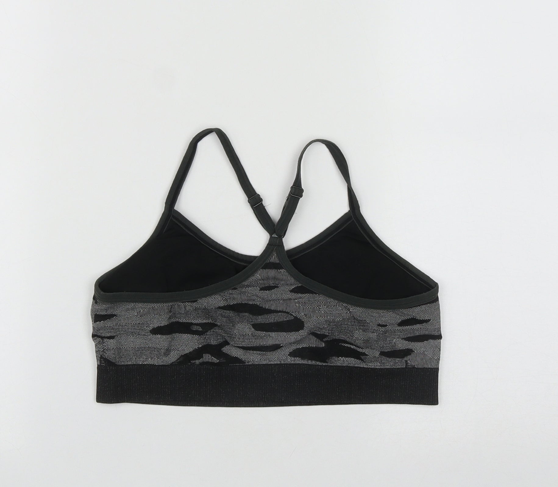 Reebok Womens Black Geometric Nylon Cropped Casual Size L Round Neck
