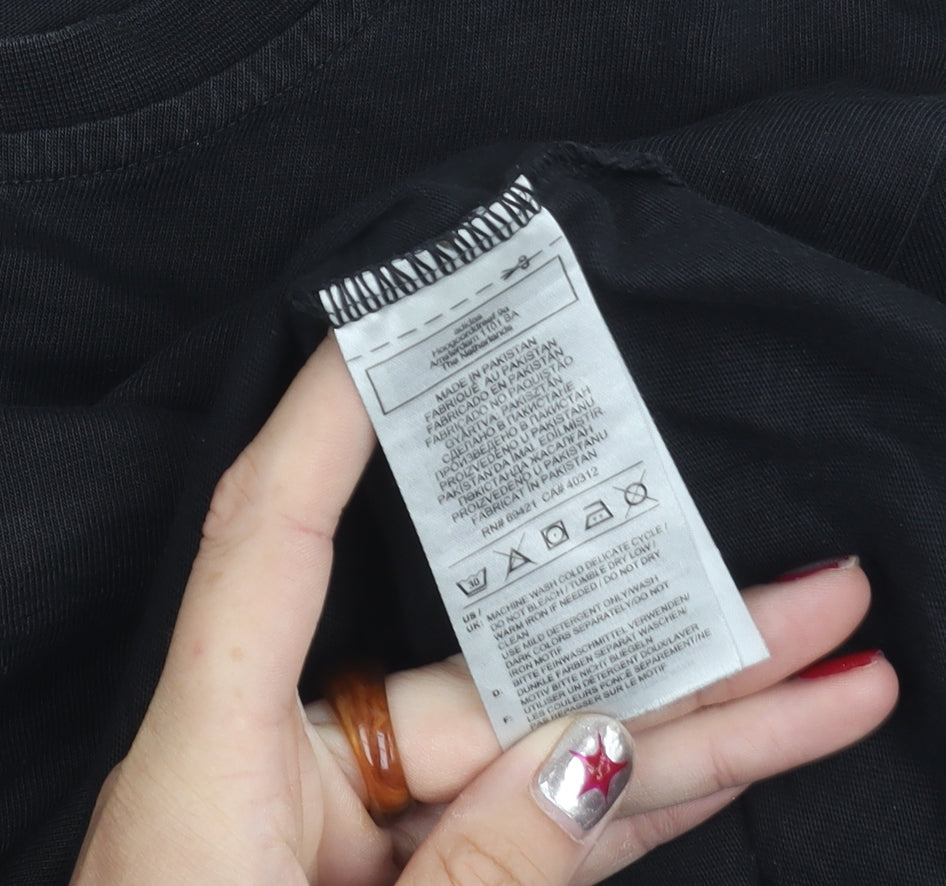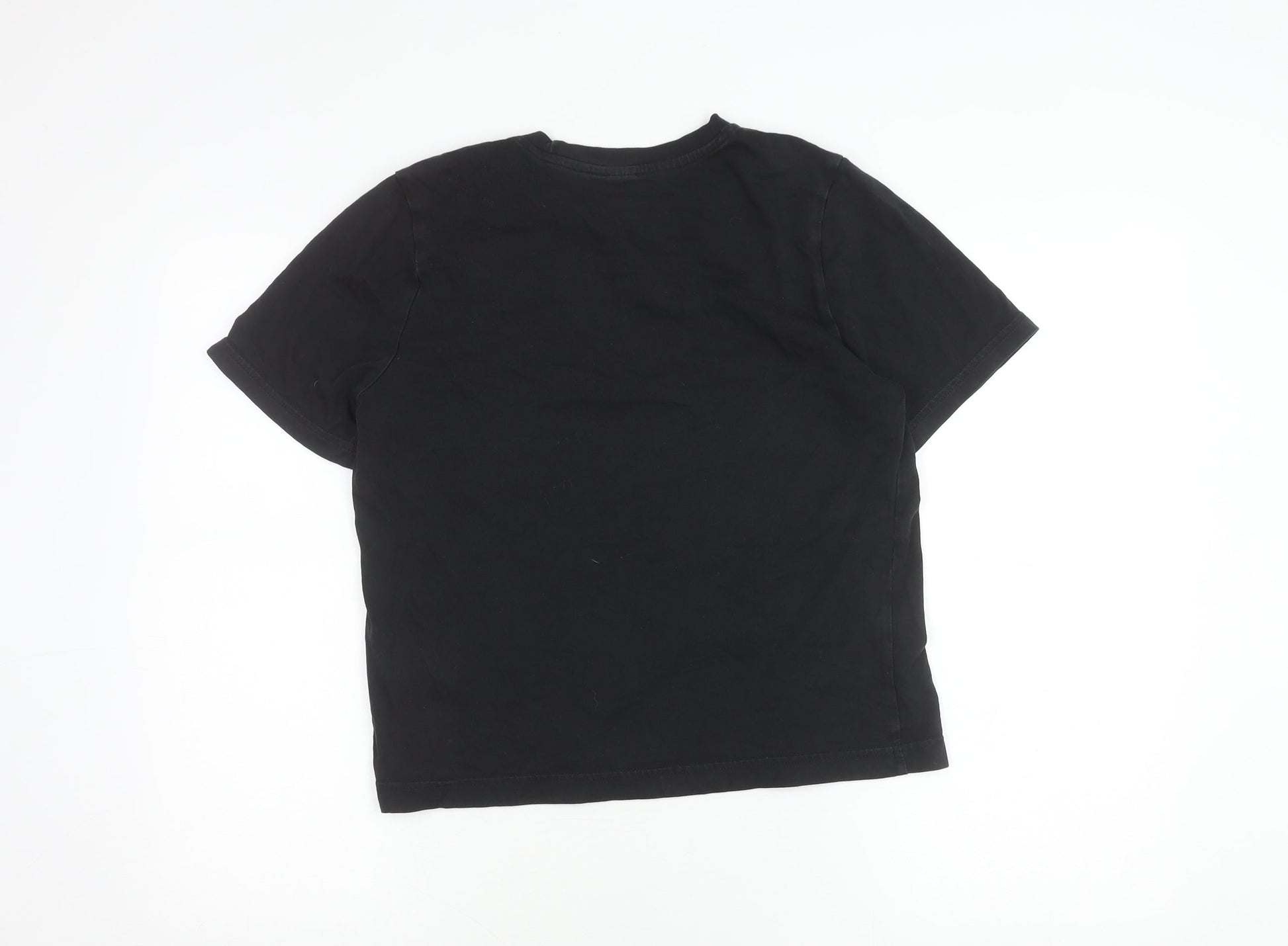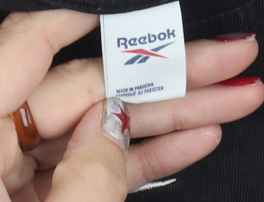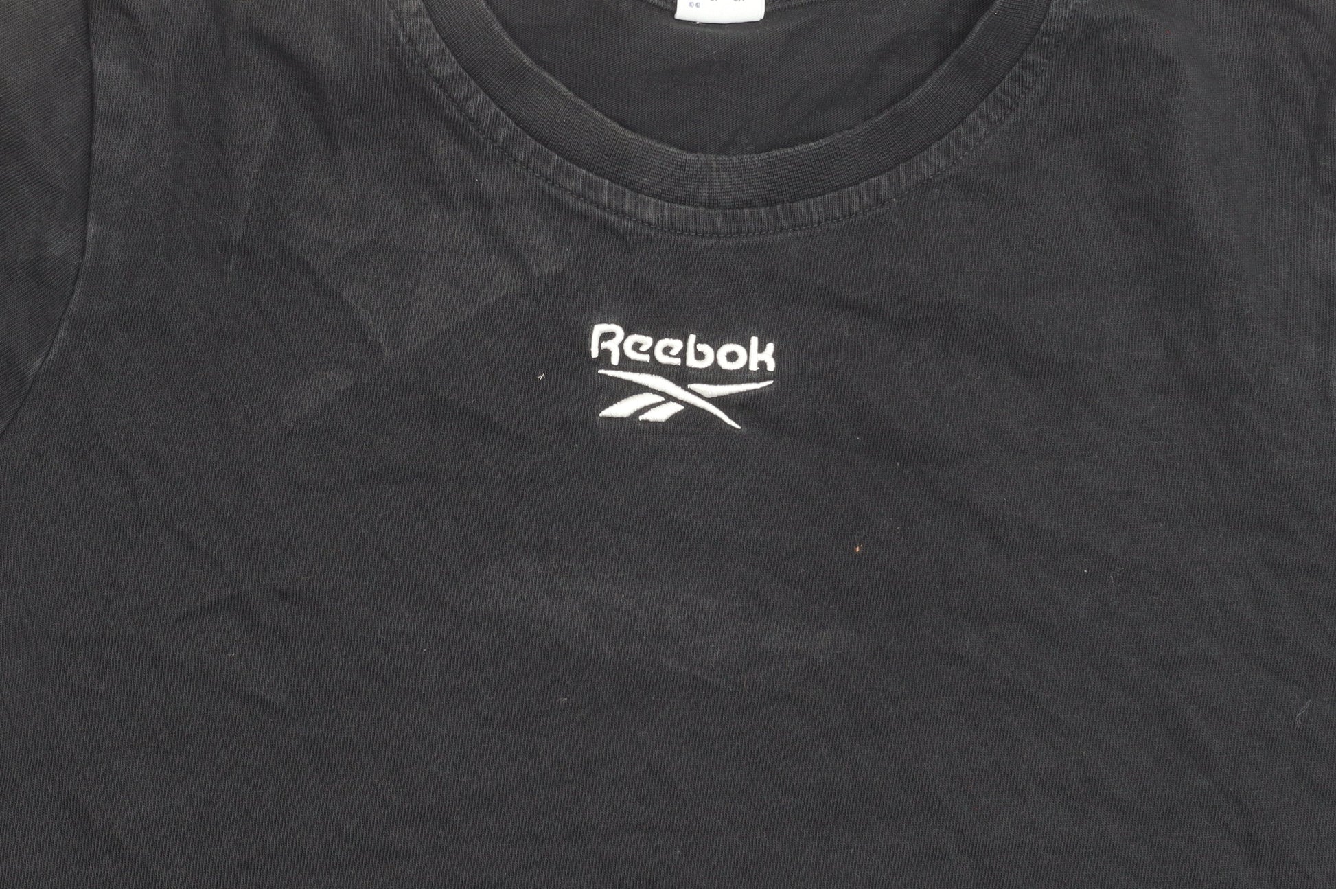 Reebok Womens Black Small Logo Embroidered Cotton T-Shirt