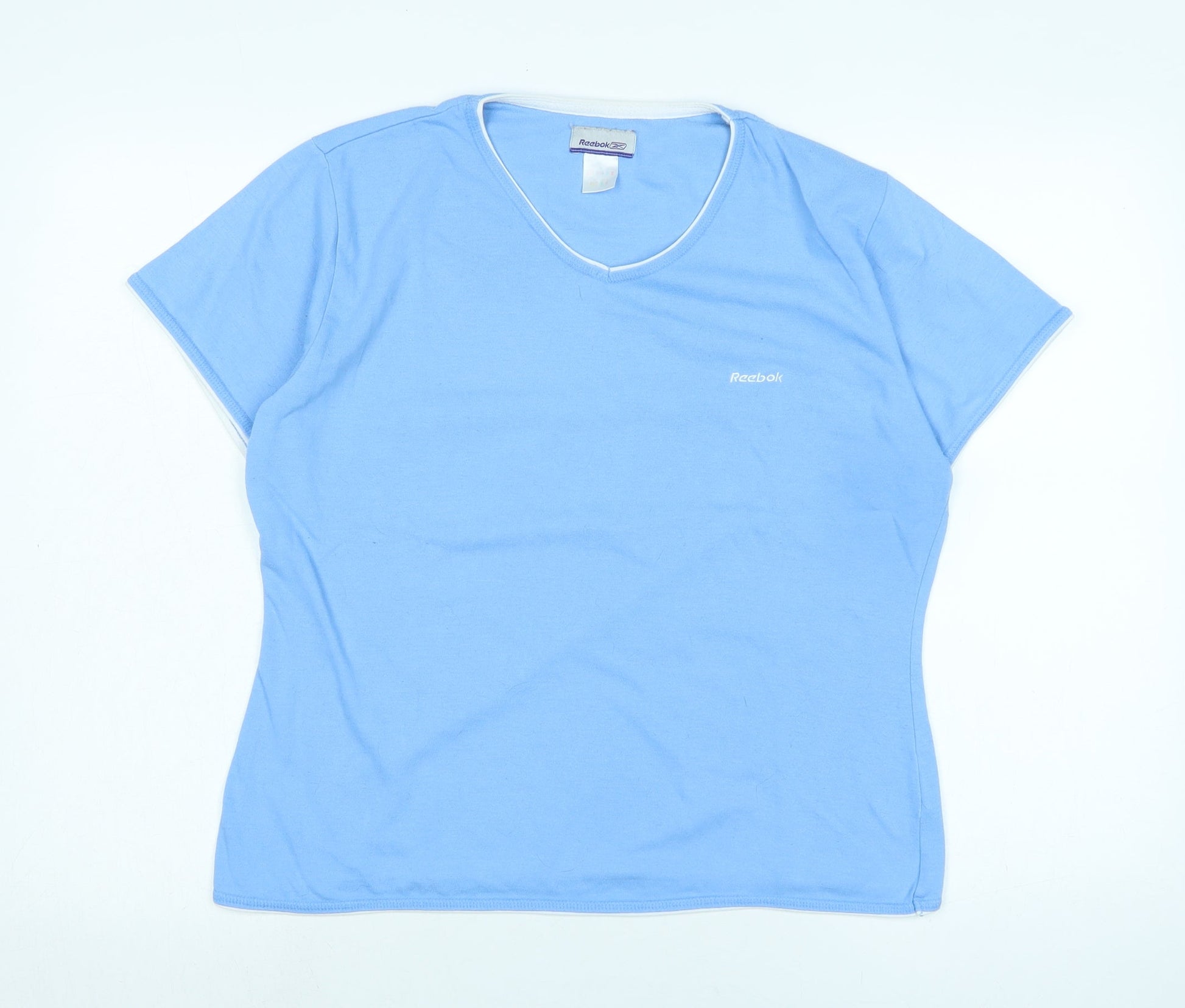 Reebok Womens Blue Polyester Basic T-Shirt Size XL V-Neck - Logo
