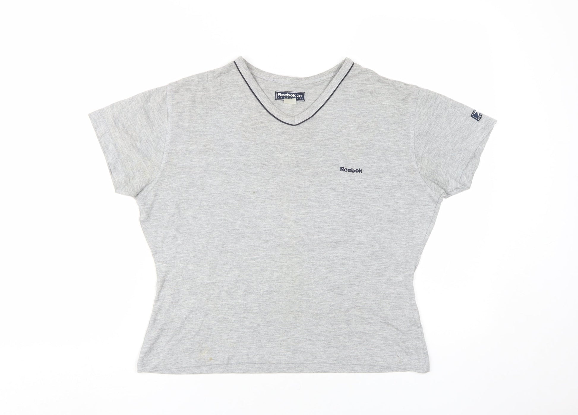 Reebok Women's Grey V-Neck T-Shirt, Size M, Casual Wear