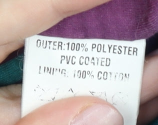 - Material Breakdown: 100% Polyester PVC coated 100% Cotton lining