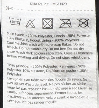 - Material Breakdown: 100% Polyester 90% Polyester 10% Elastane
