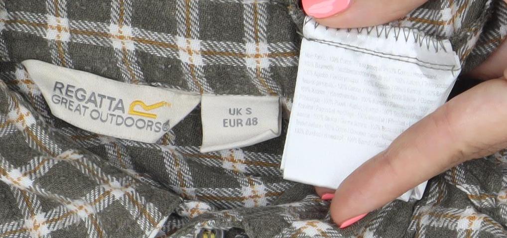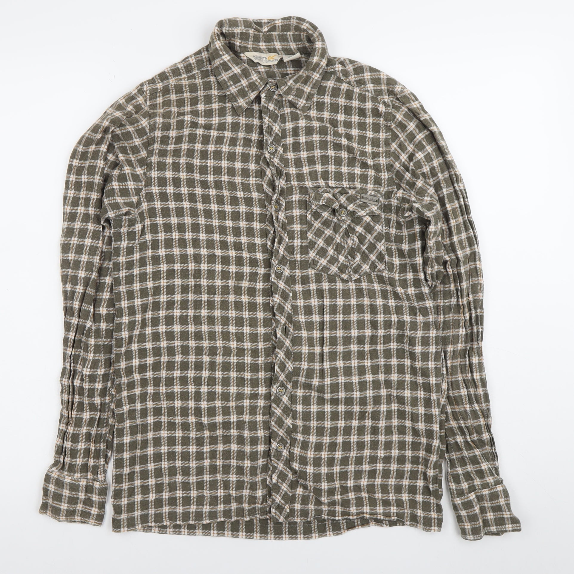 Regatta Mens Green Checked Cotton Button-Up Shirt Size S