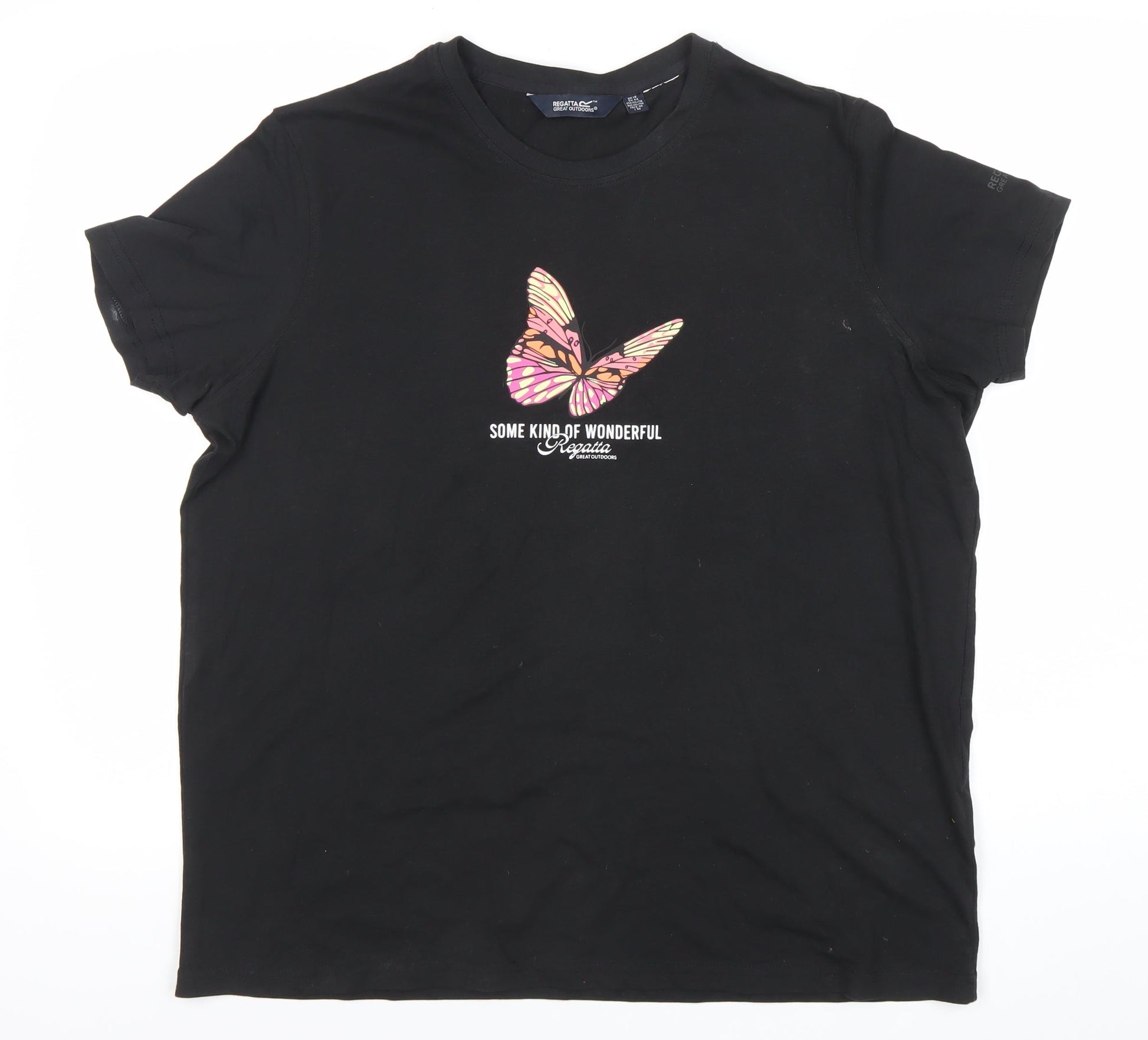 Regatta Womens Black Butterfly Print Cotton T-Shirt UK 18
