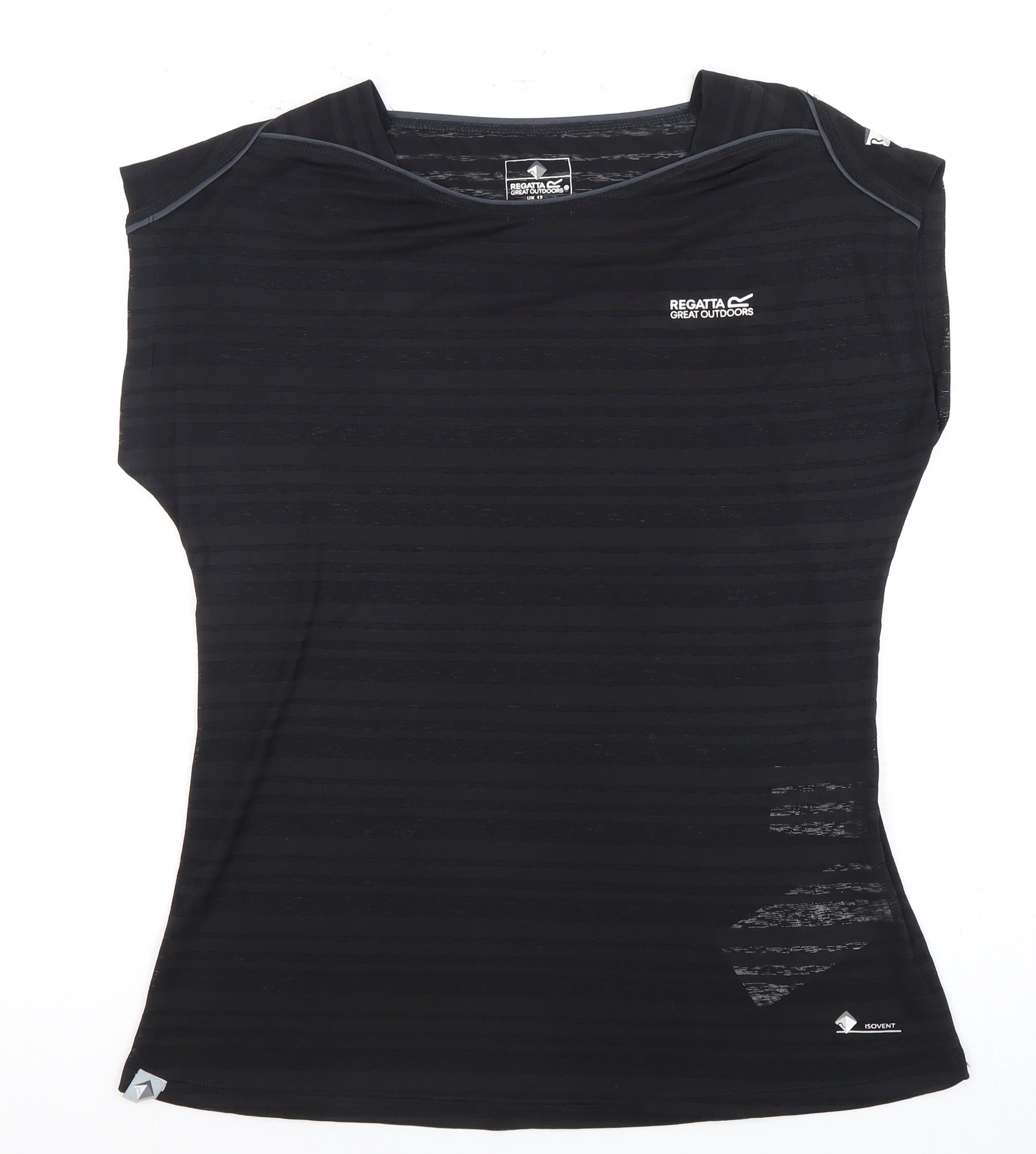 Regatta Women's Black Striped Sleeveless T-Shirt, Size 12