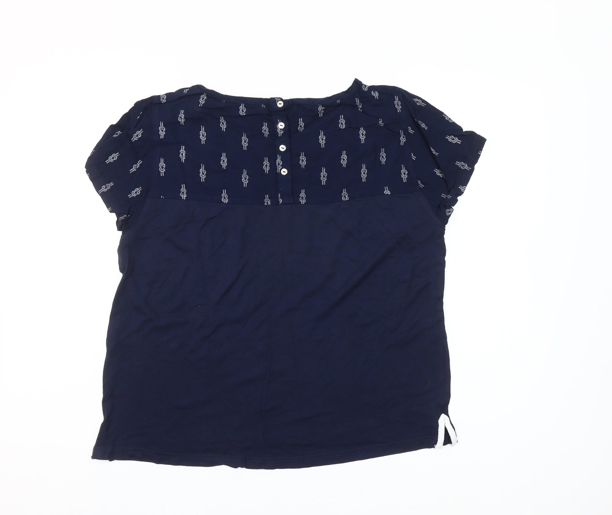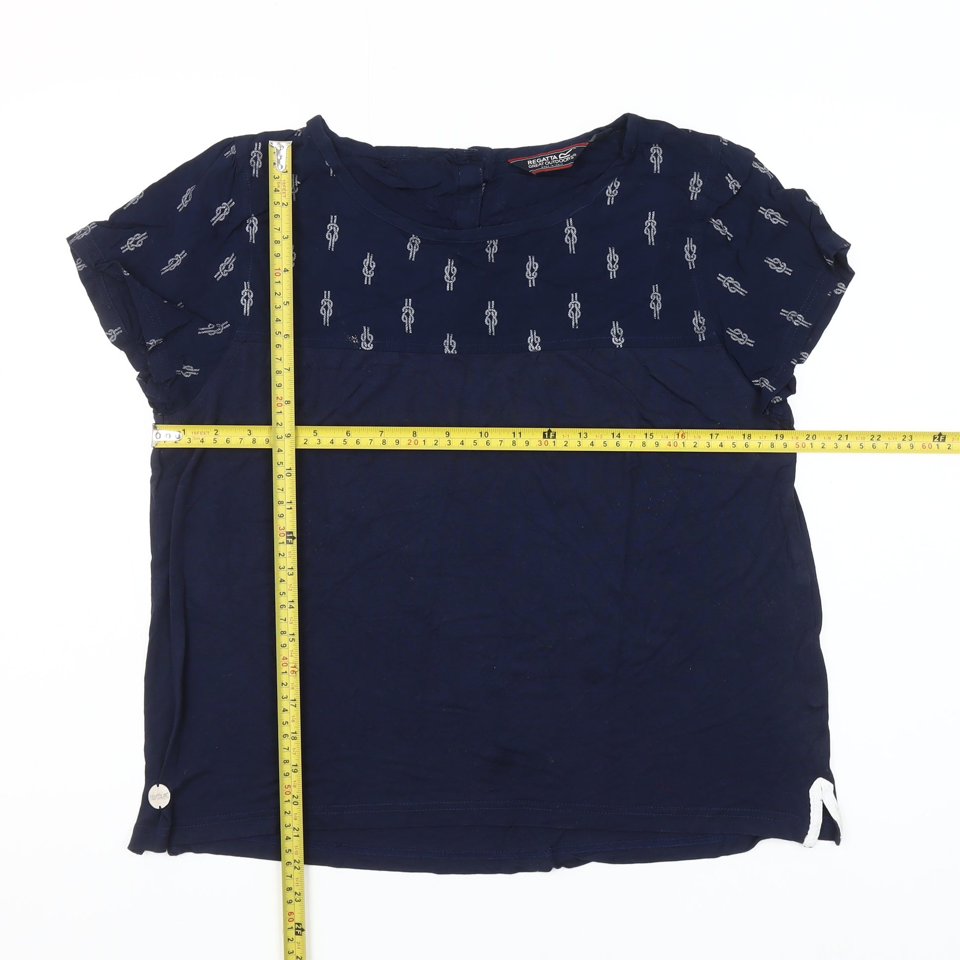 Regatta Womens Blue Cotton Blouse Size 14 Short Sleeve Button Detail