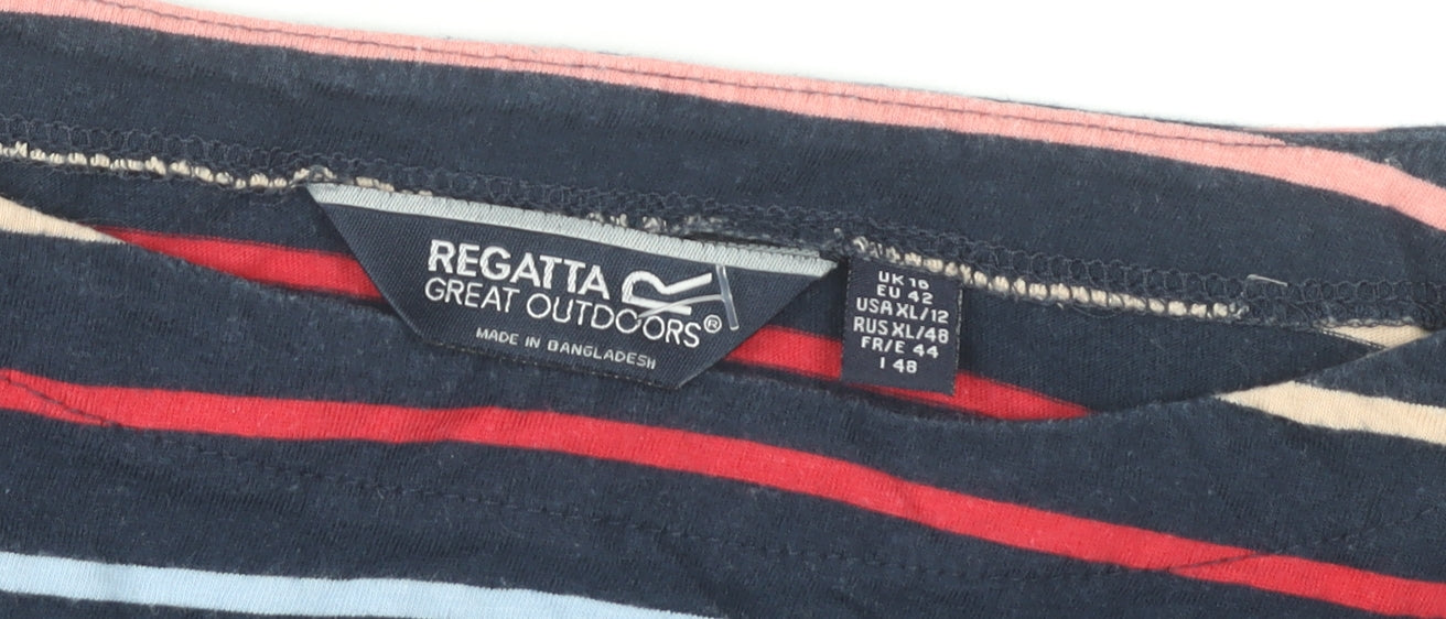 Regatta Womens Multicoloured Striped Boat Neck Jersey 3/4 Sleeve T-Shirt Size 16