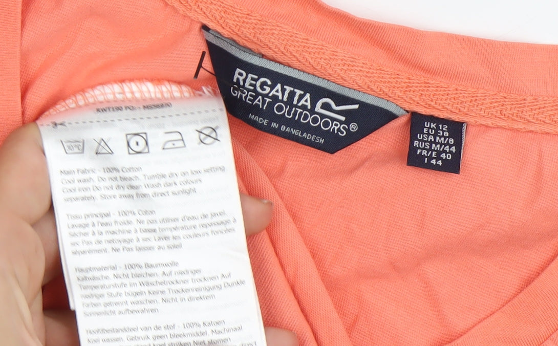 Regatta Womens Orange Cotton T-Shirt UK 12 Scoop Neck Casual