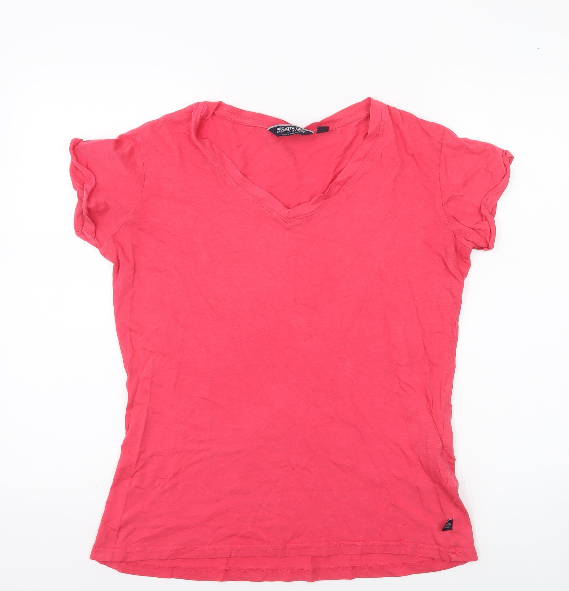 Regatta Womens Pink V-Neck Cotton T-Shirt Size 12 Casual Lightweight