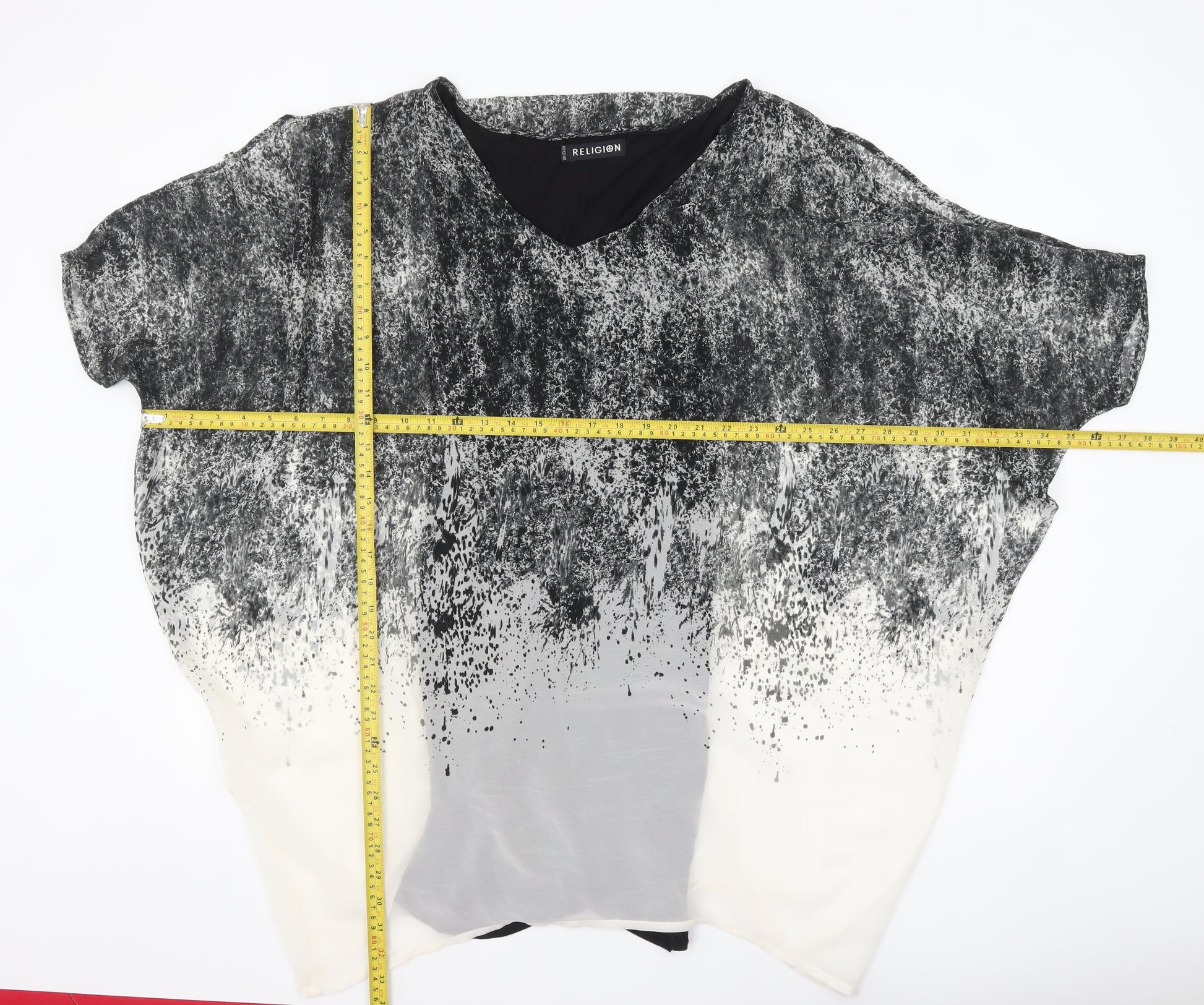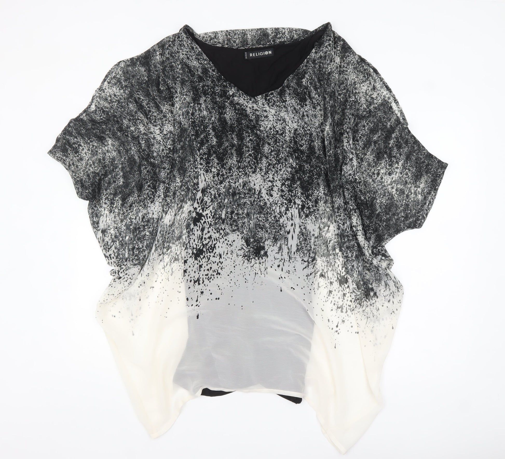 Religion Women’s Black Grey Ombre Tunic Blouse Size 12 V-Neck