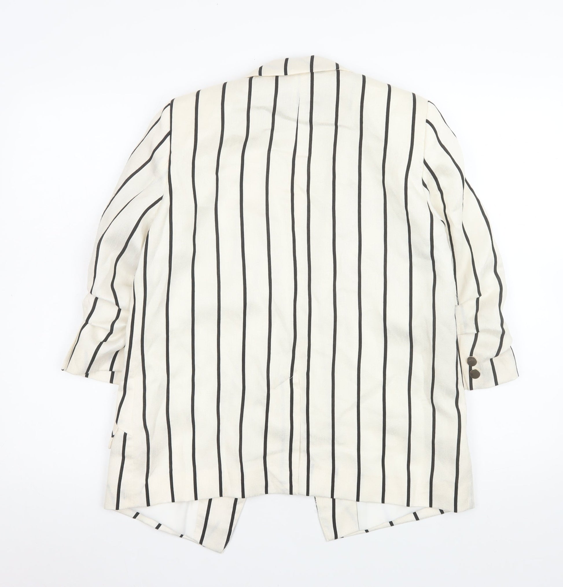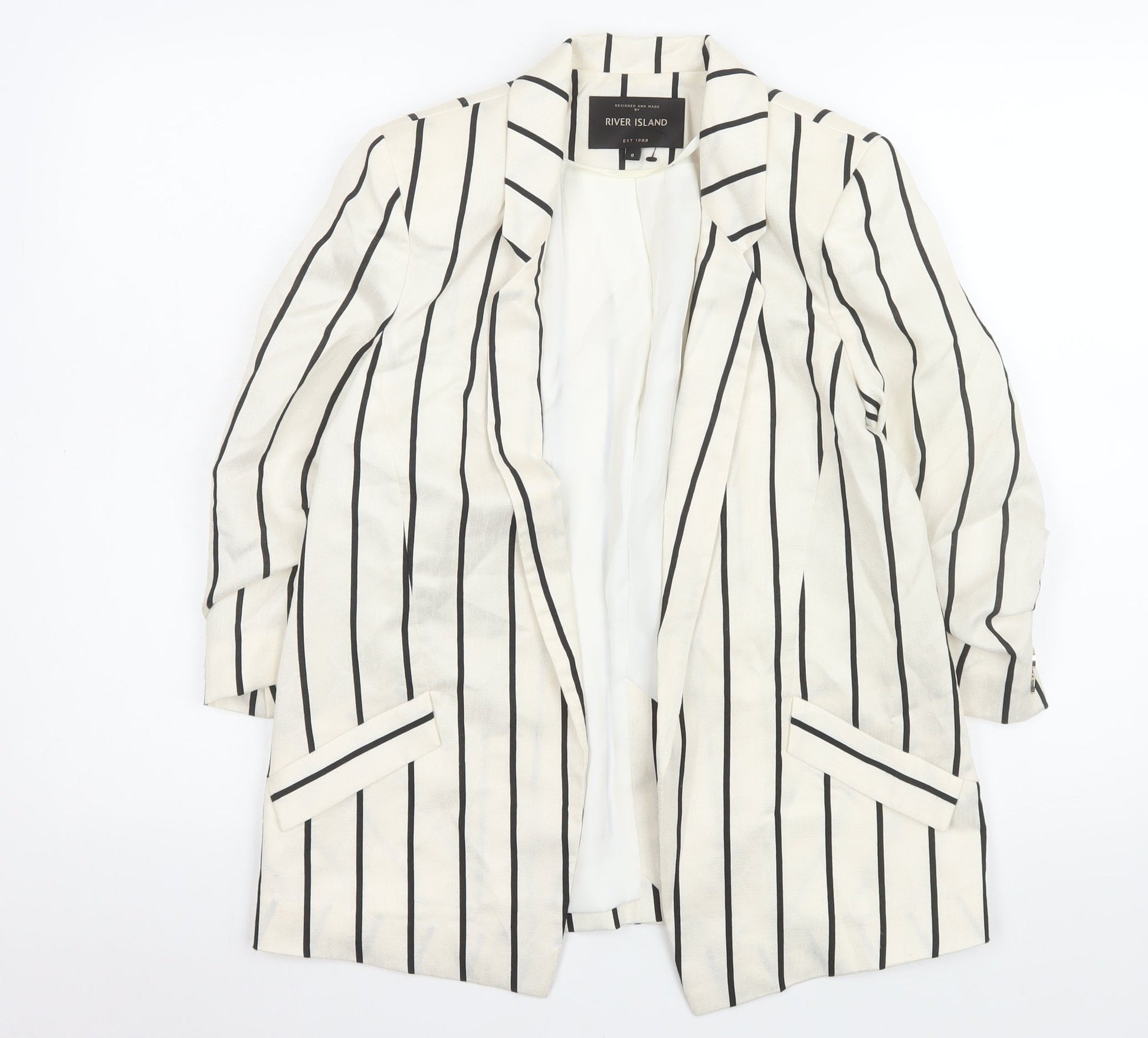 River Island Women’s Ivory Black Striped Long Blazer Jacket UK 8