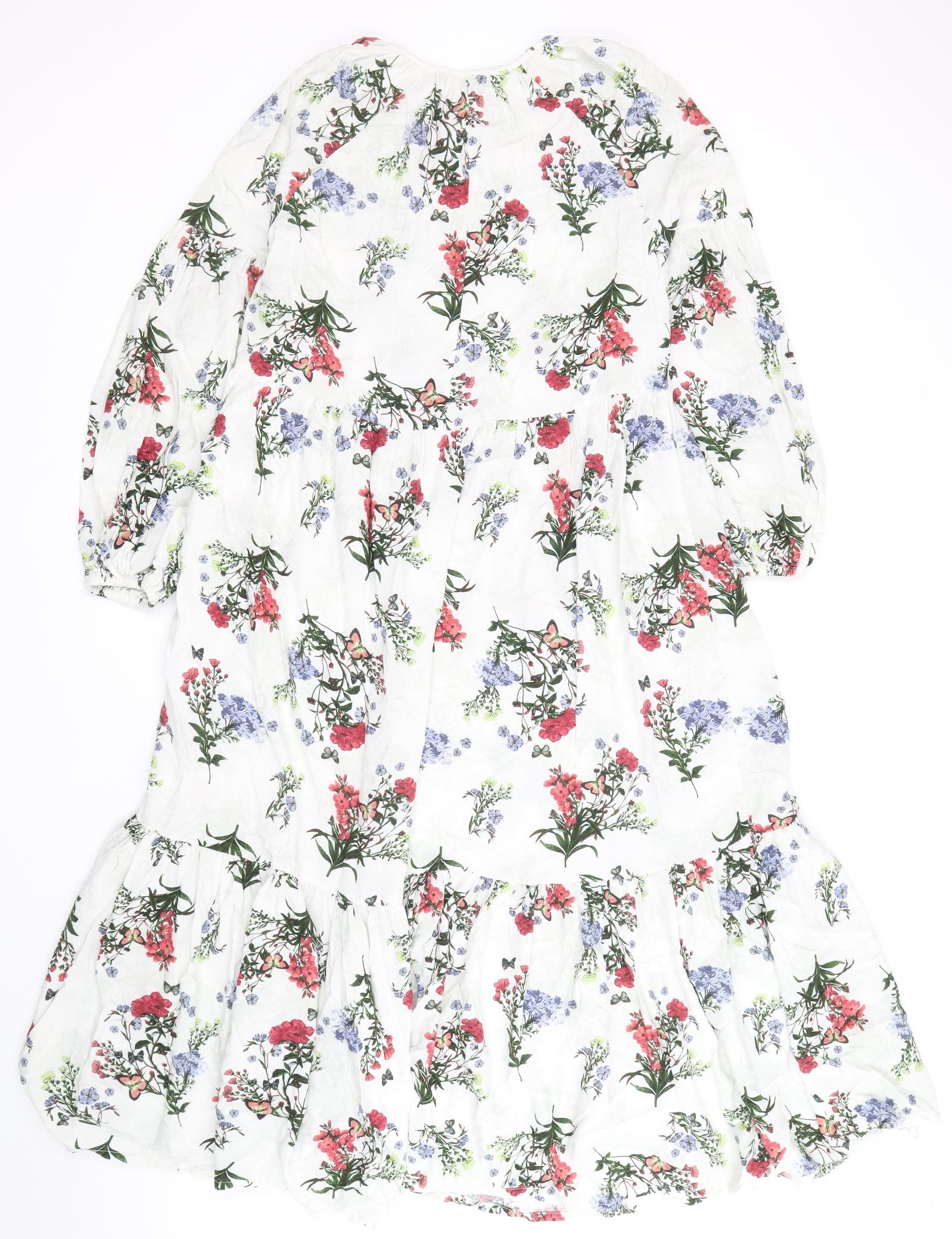 River Island Womens White Floral Cotton A-Line Size 8 Square Neck Tie