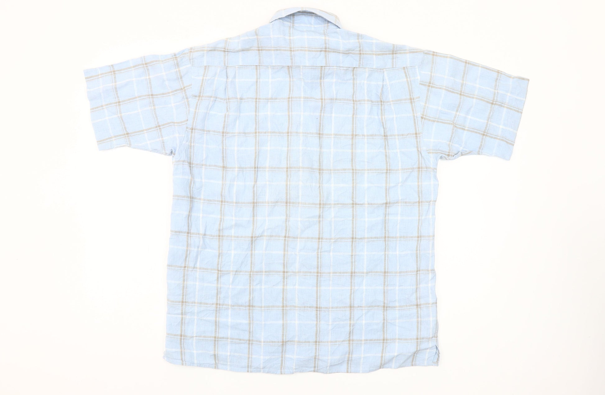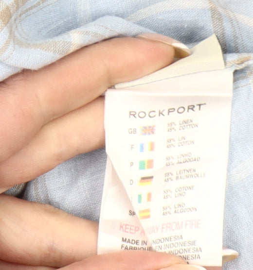 Rockport Men’s Blue Check Short Sleeve Linen Cotton Shirt S