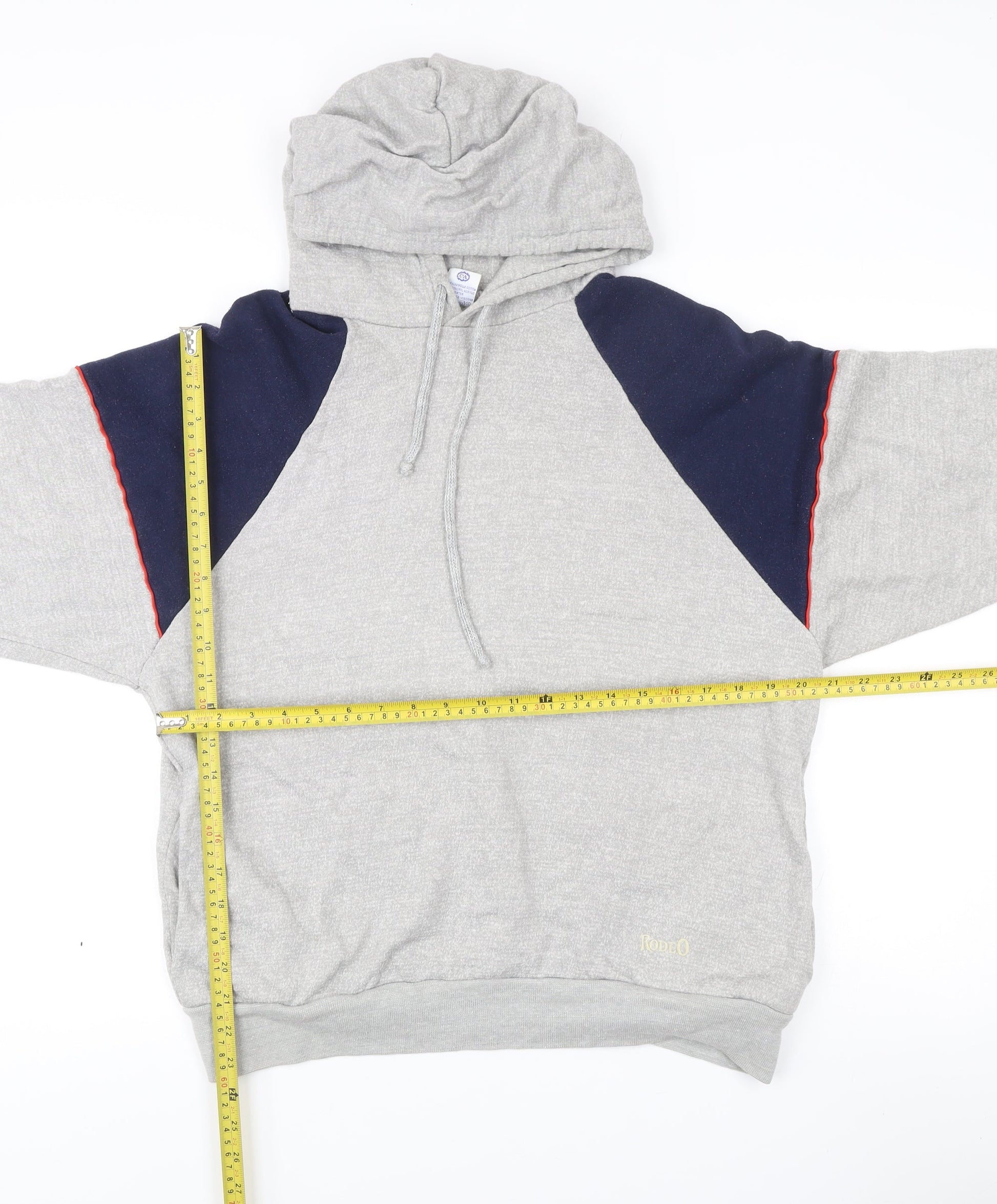 Rodeo Men's Grey Blue Hoodie L Pullover Logo Vintage Casual