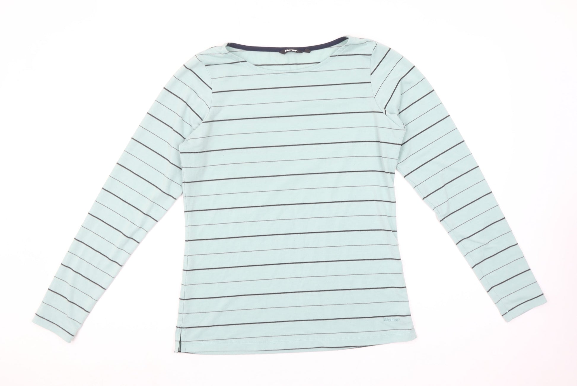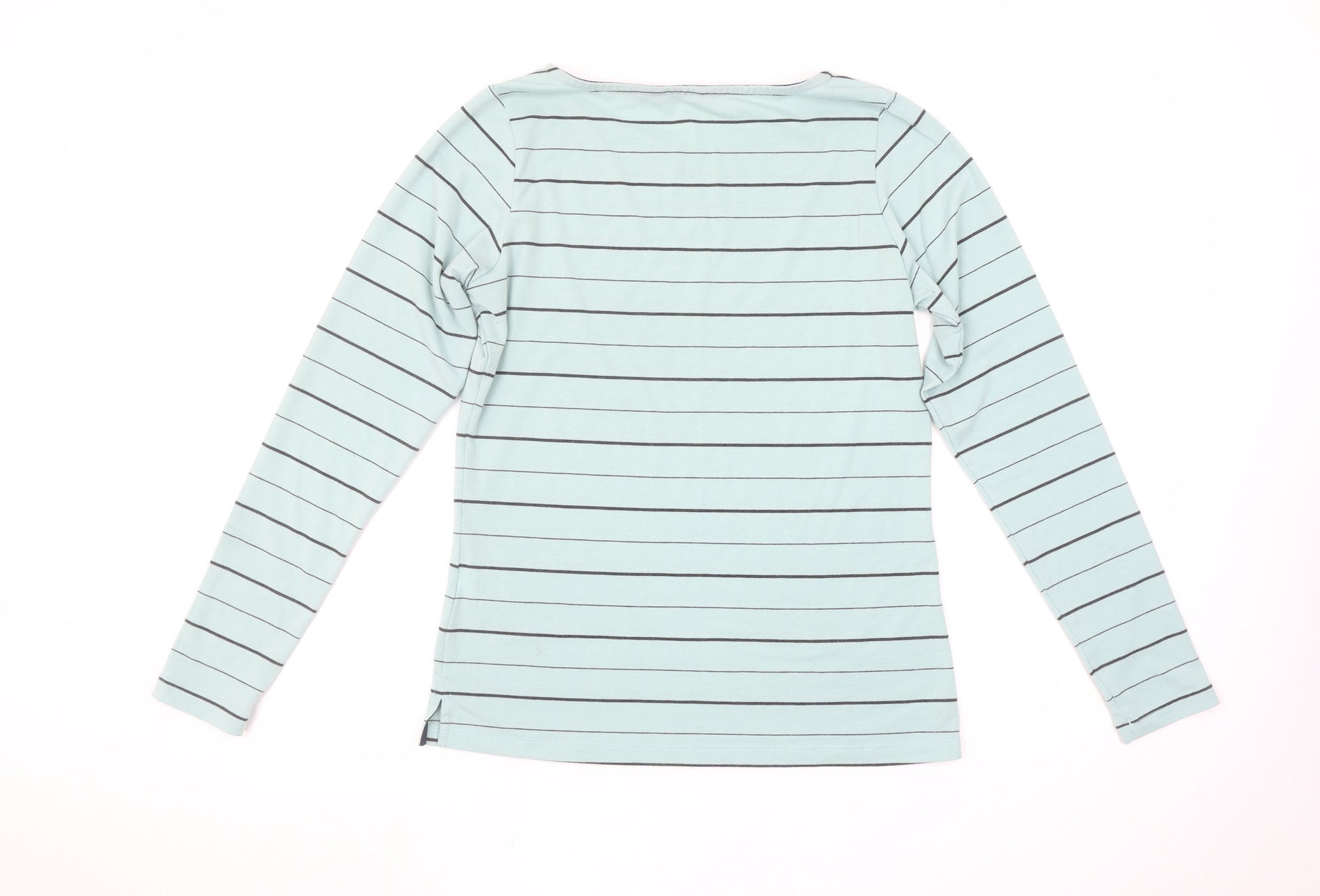 Rohan Women Blue Striped Long Sleeve Cotton Boat Neck T-Shirt Size 10