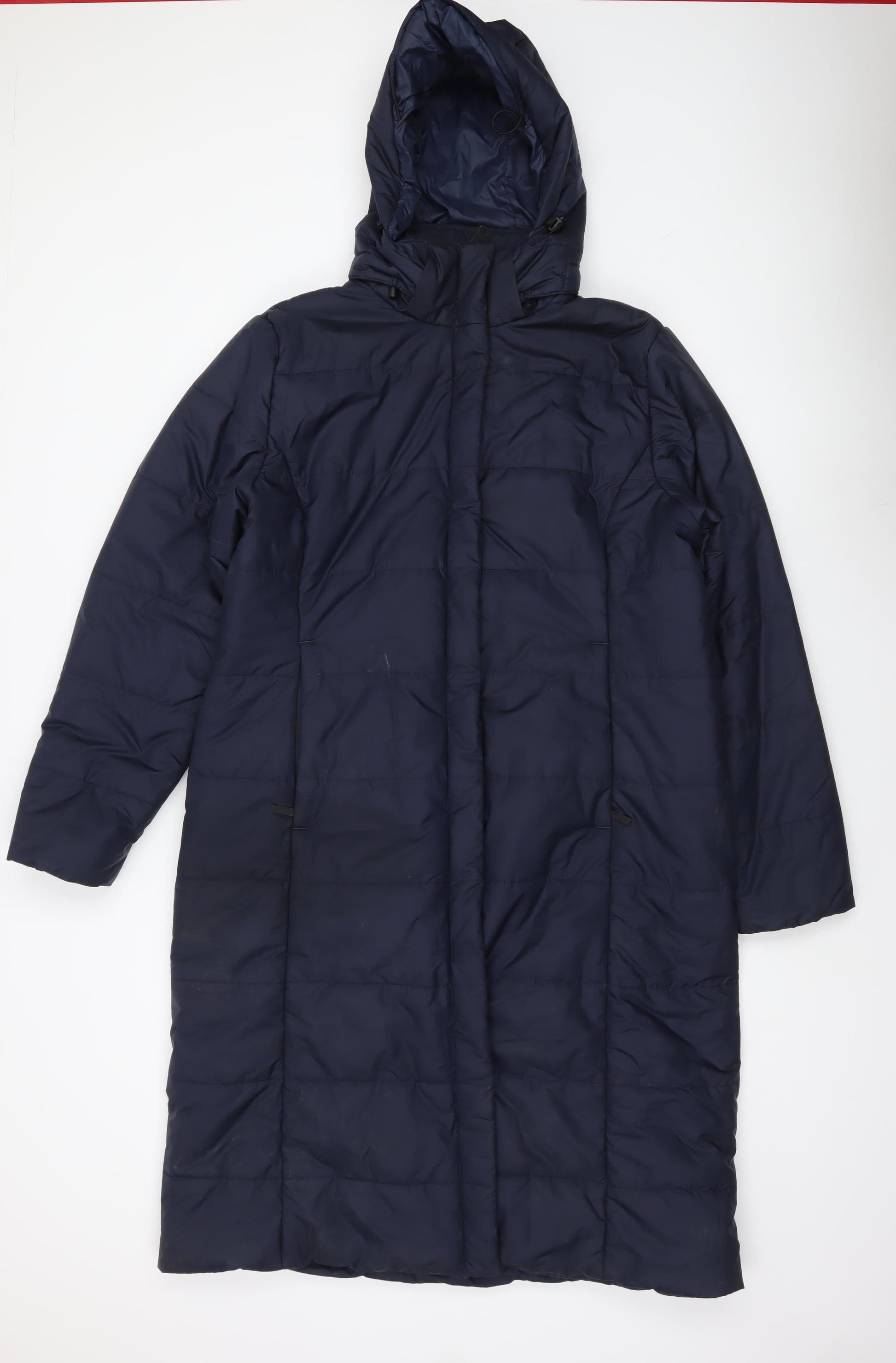 Rohan Womens Blue Long Puffer Coat Jacket L Hooded Insulated