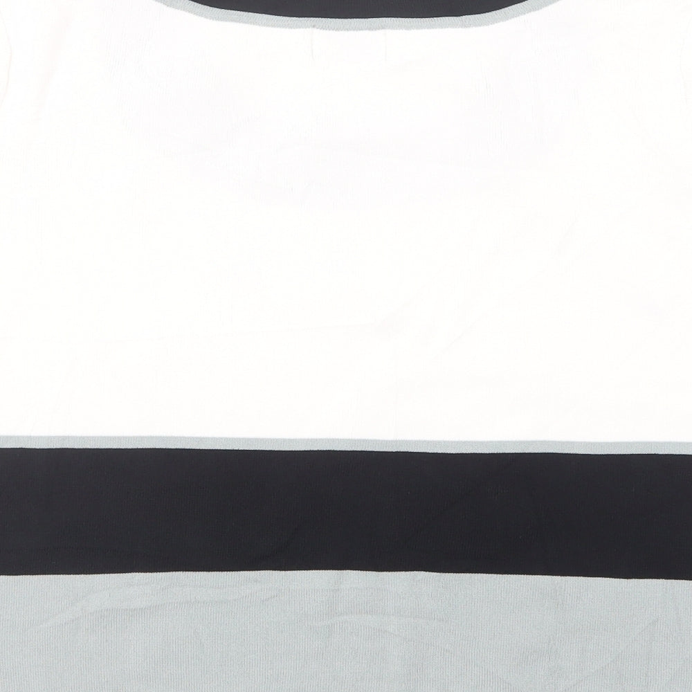 Roman Womens White Striped Viscose Basic Blouse Size S Scoop Neck - Flower Detail