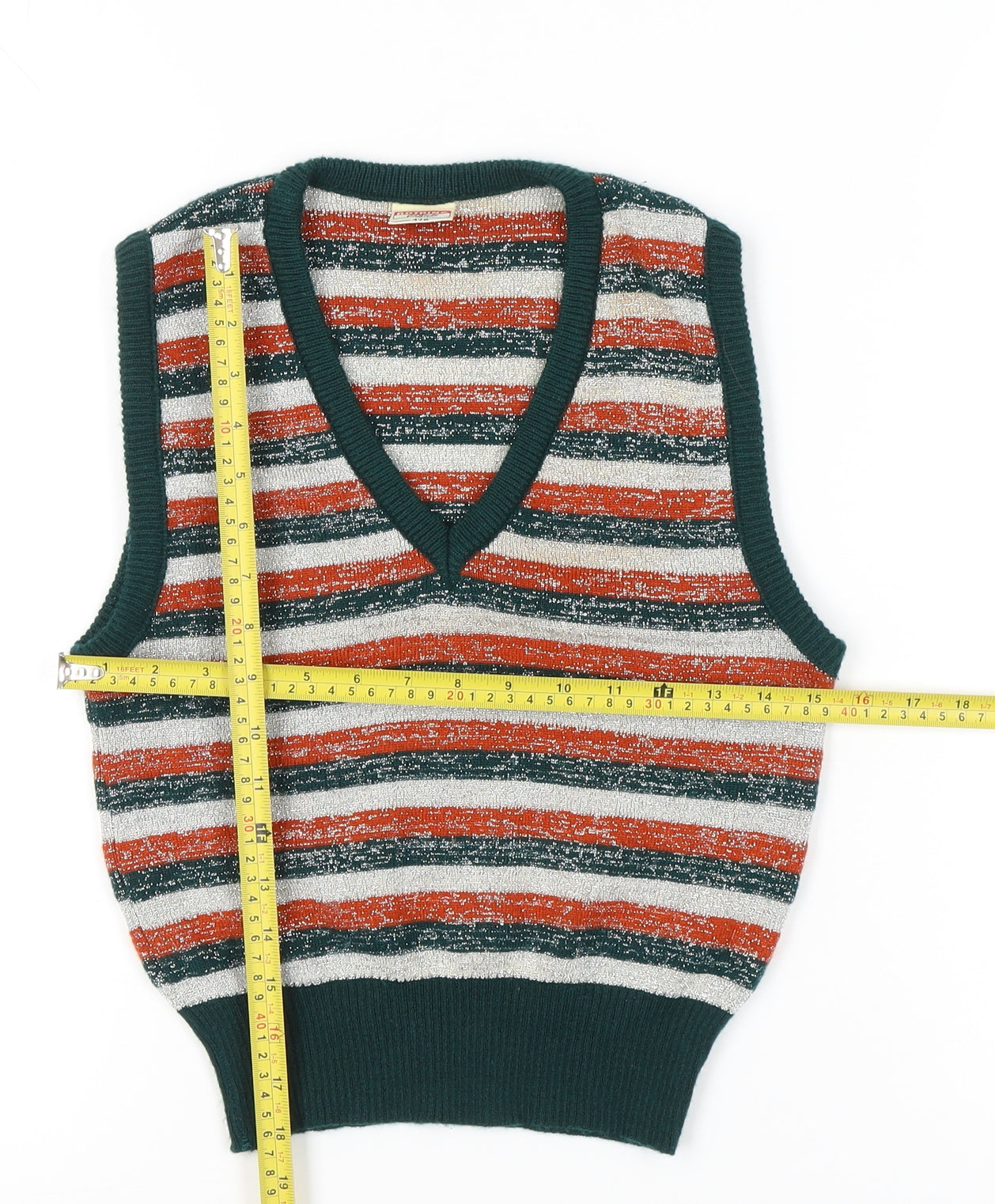 Rotring Women's Multicoloured Striped Knit Vest XL V-Neck Retro