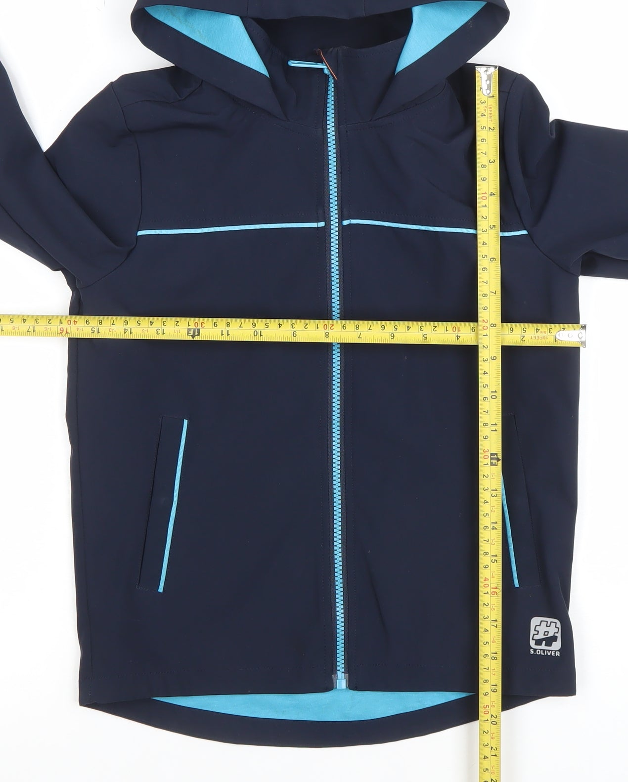 s.Oliver Boys Blue Hooded Soft Shell Jacket 8 Years Lined Water Resistant