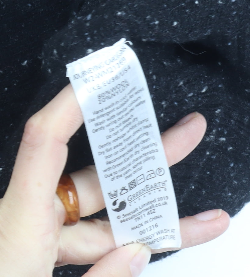 Seasalt Cornwall Black Wool Knit Women's Open Front Cardigan Size 8