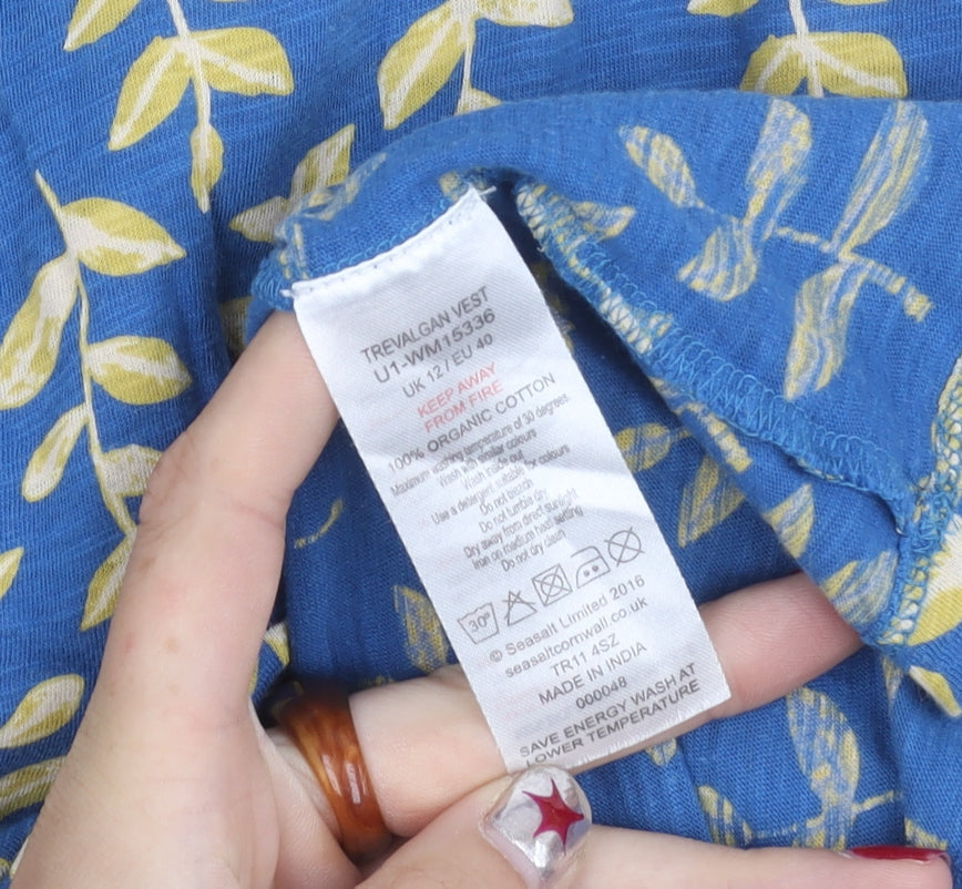 Seasalt Cornwall Women’s Blue Floral Organic Cotton Tank Top Size 12