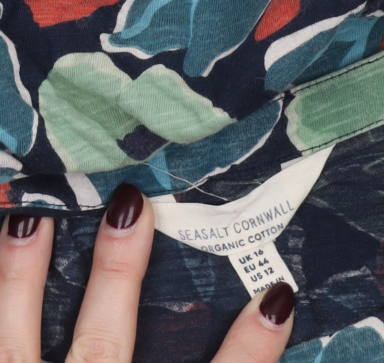 Seasalt Cornwall Women’s Multicoloured Floral A-Line Organic Cotton Dress Size 16