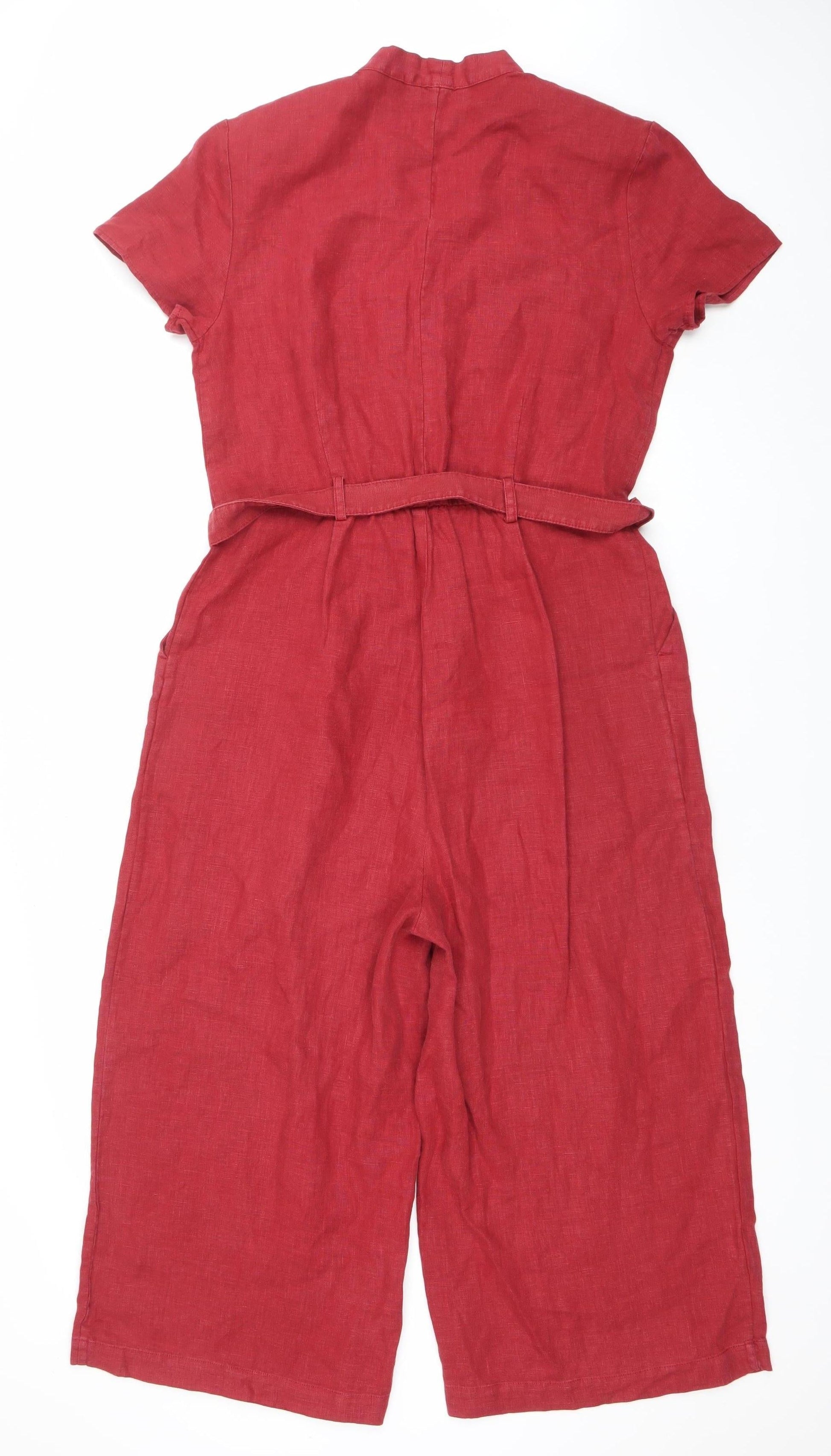 Seasalt Cornwall Women's Red Linen Jumpsuit Size 12 Belted Short Sleeve