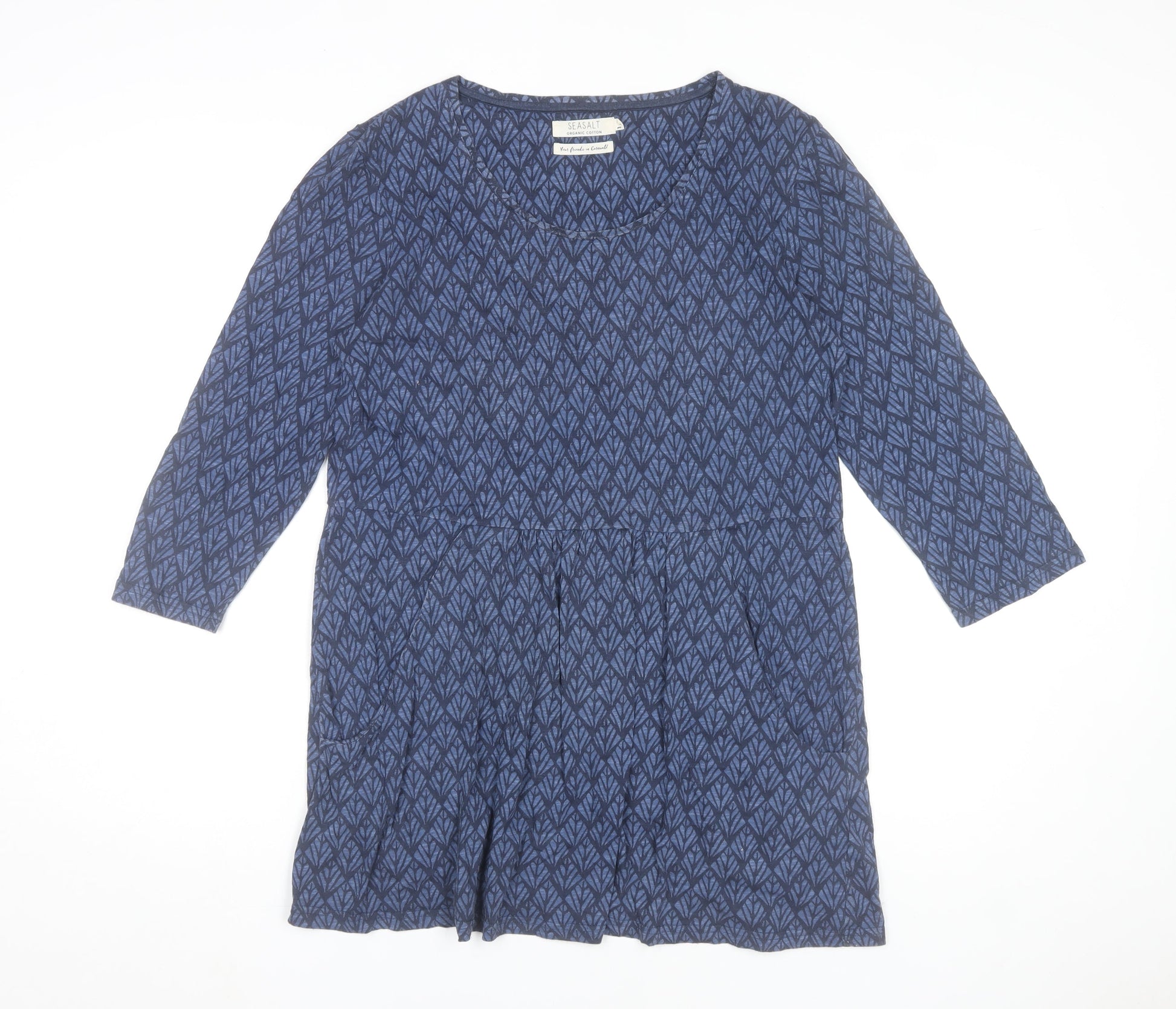Seasalt Women Blue Organic Cotton Tunic Blouse Size 14