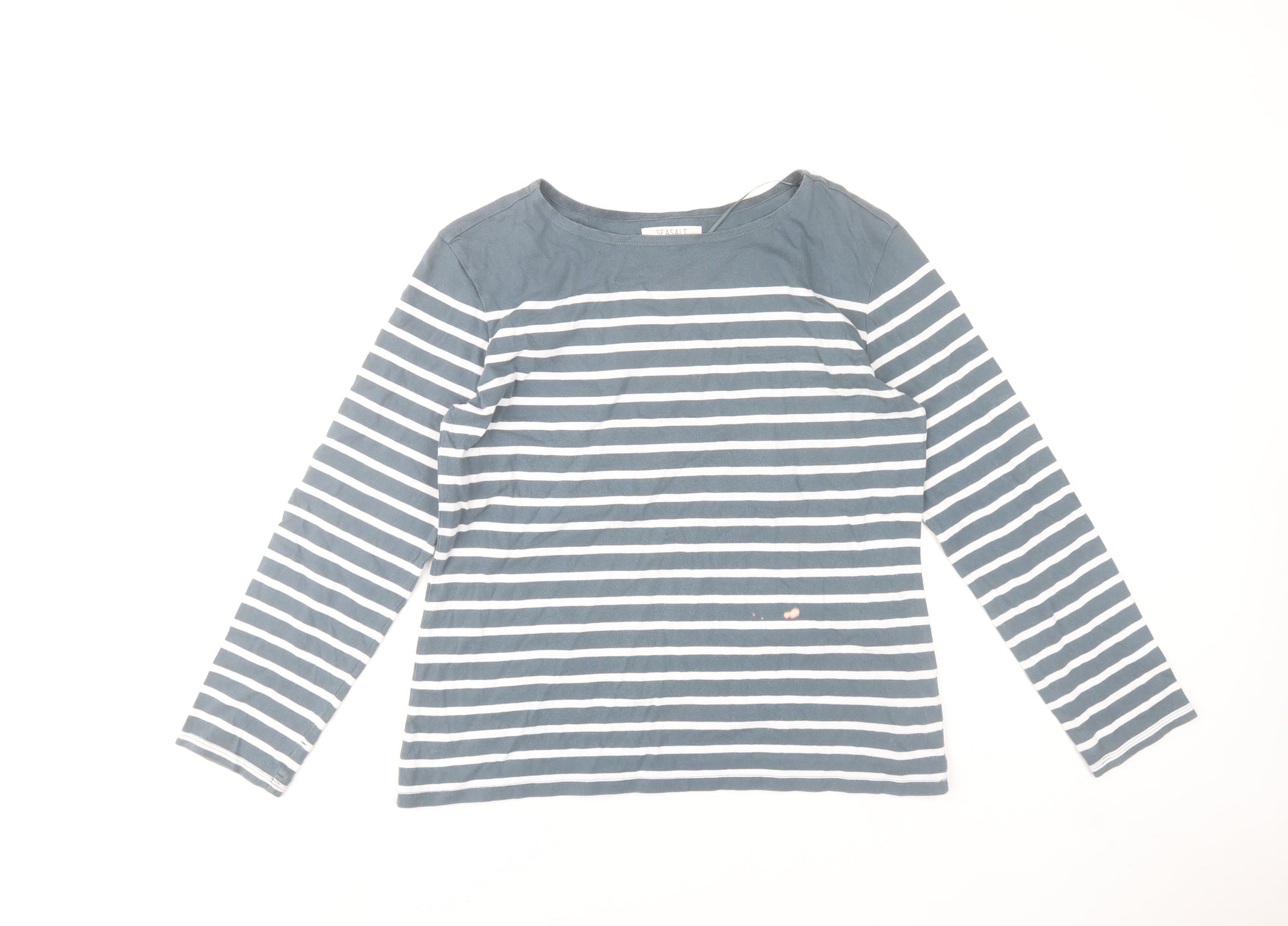Seasalt Women Blue Striped Long Sleeve Cotton Sailor T-Shirt UK 14