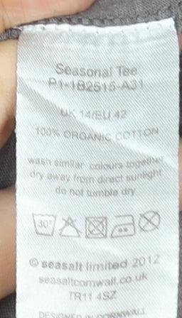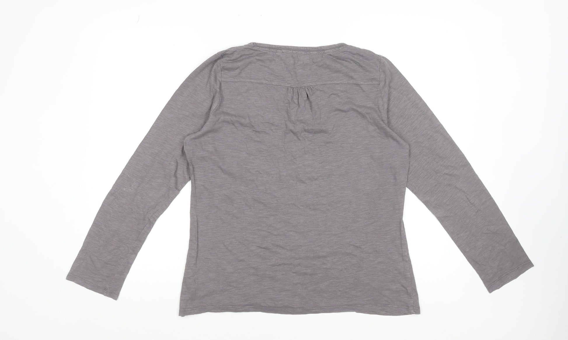 Seasalt Women Grey Basic Long Sleeve Cotton Jersey Top Size 14