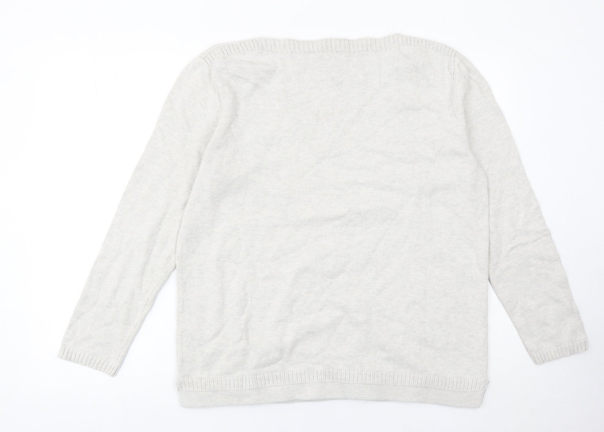 Seasalt Women Grey Organic Cotton Crew Neck Jumper Size 16