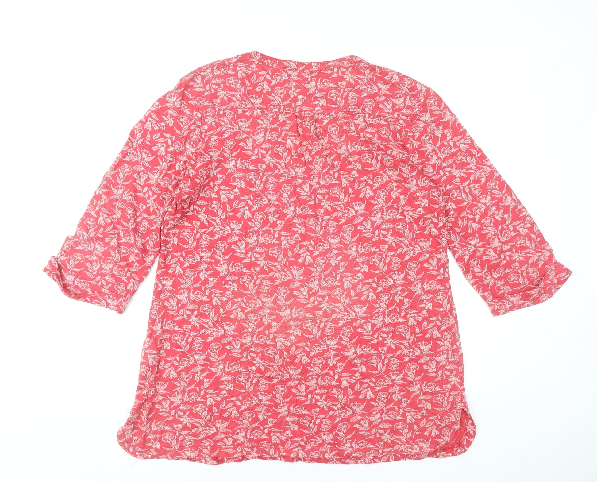 Seasalt Women Red Floral Cotton Tunic Blouse Size 14 3/4 Sleeve