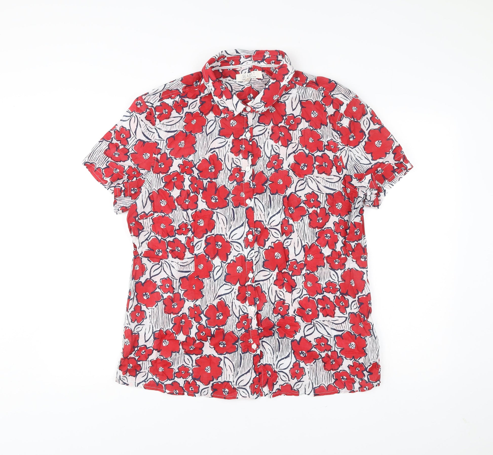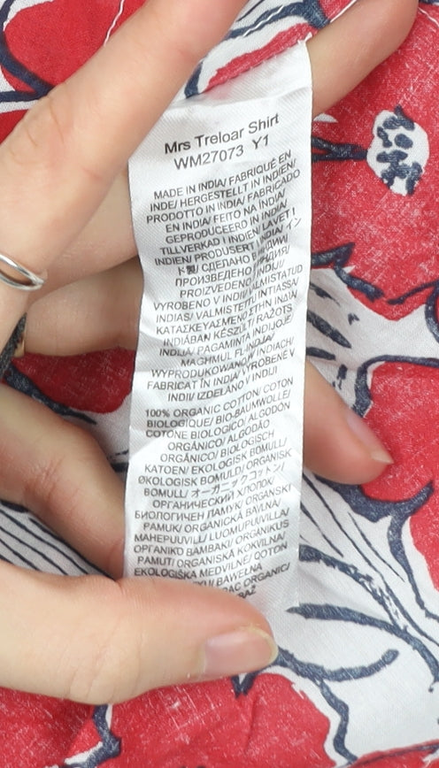 Seasalt Women Red Floral Organic Cotton Button-Up Shirt Size 18