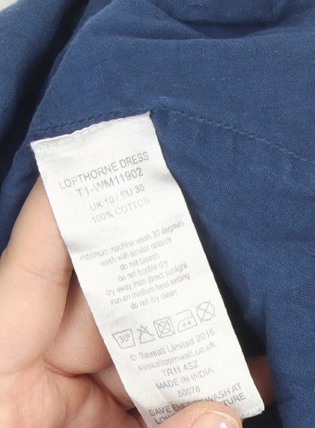 Seasalt Women’s Blue Floral A-Line Cotton Knee Length Dress Size 10