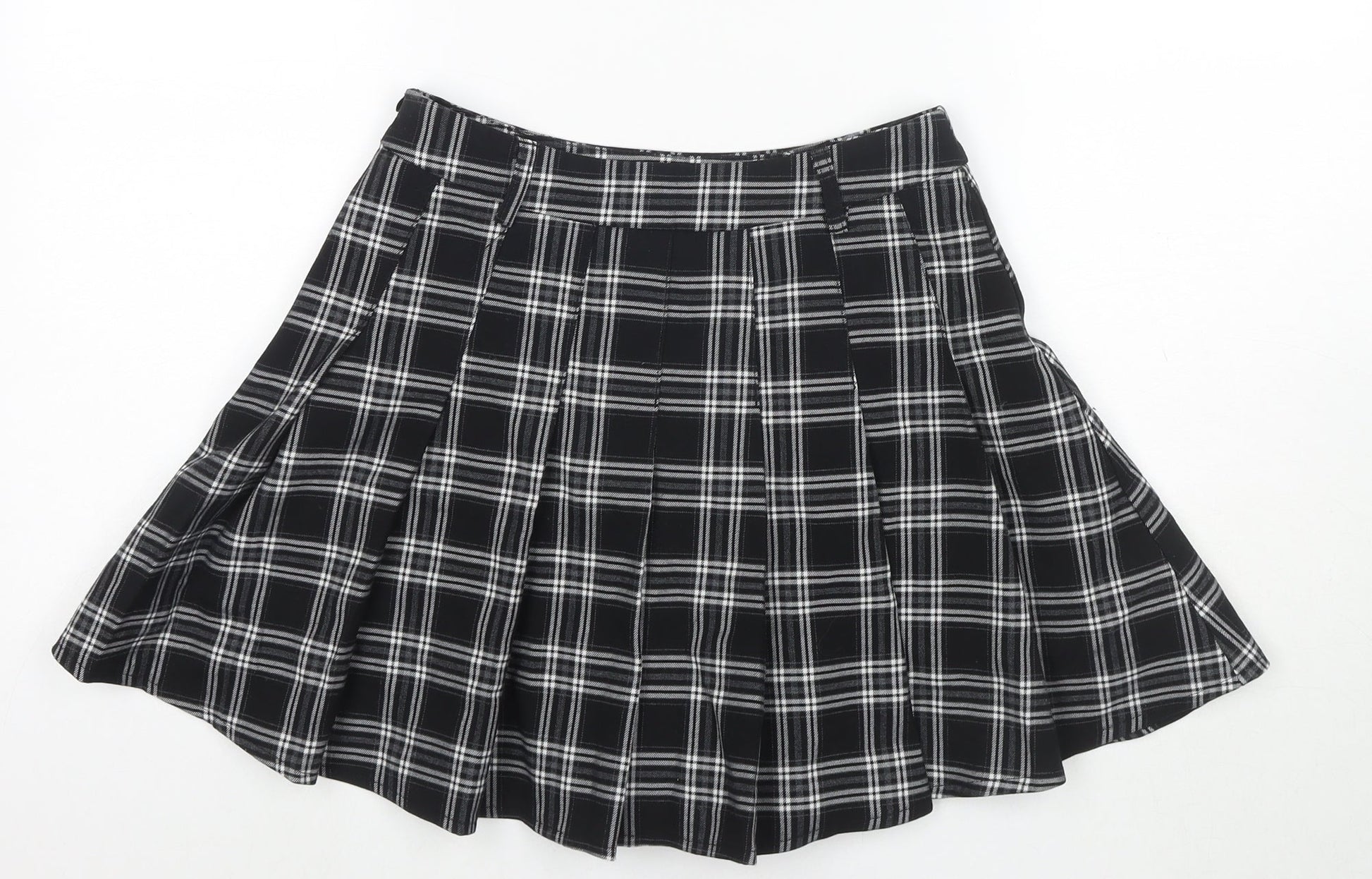 Shufeng Womens Black Check Polyester Pleated Skirt Size M Zip