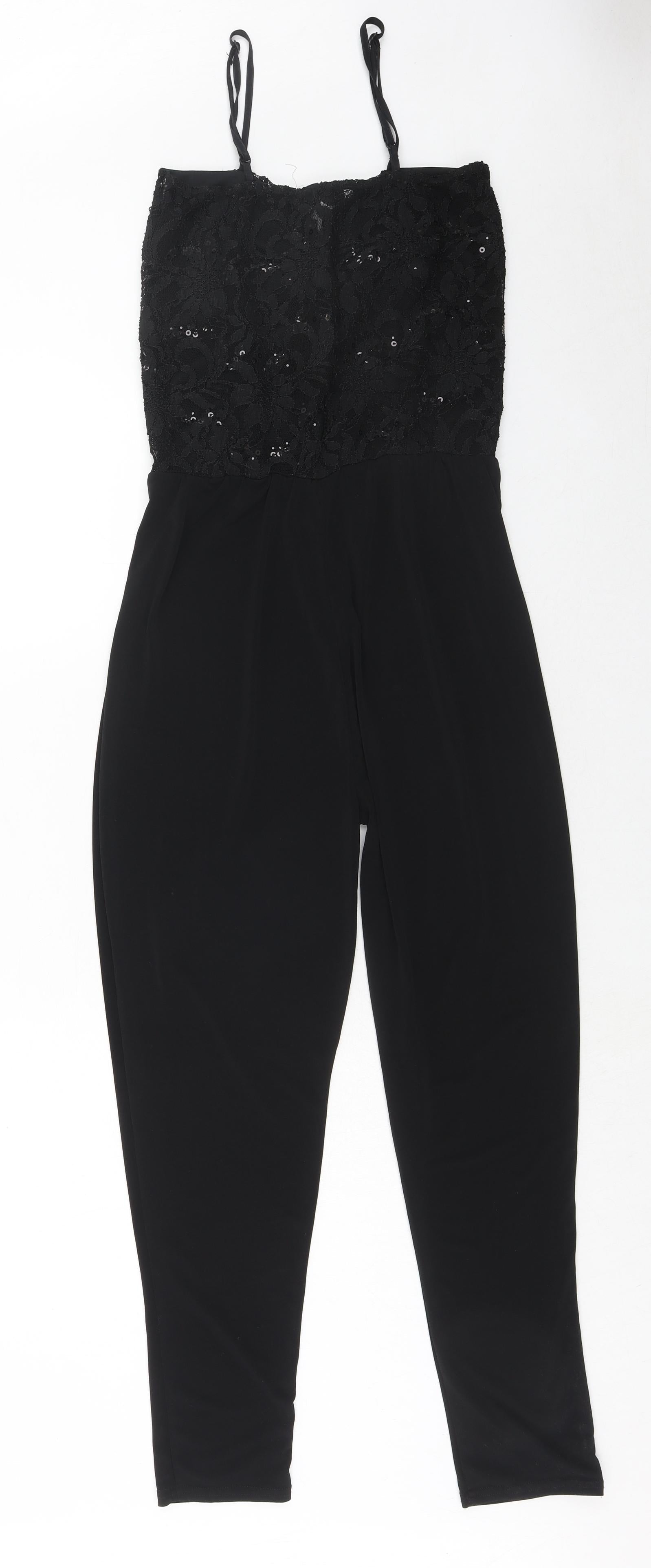 Signature Womens Black Polyester Jumpsuit One-Piece Size S Pullover - Lace Top