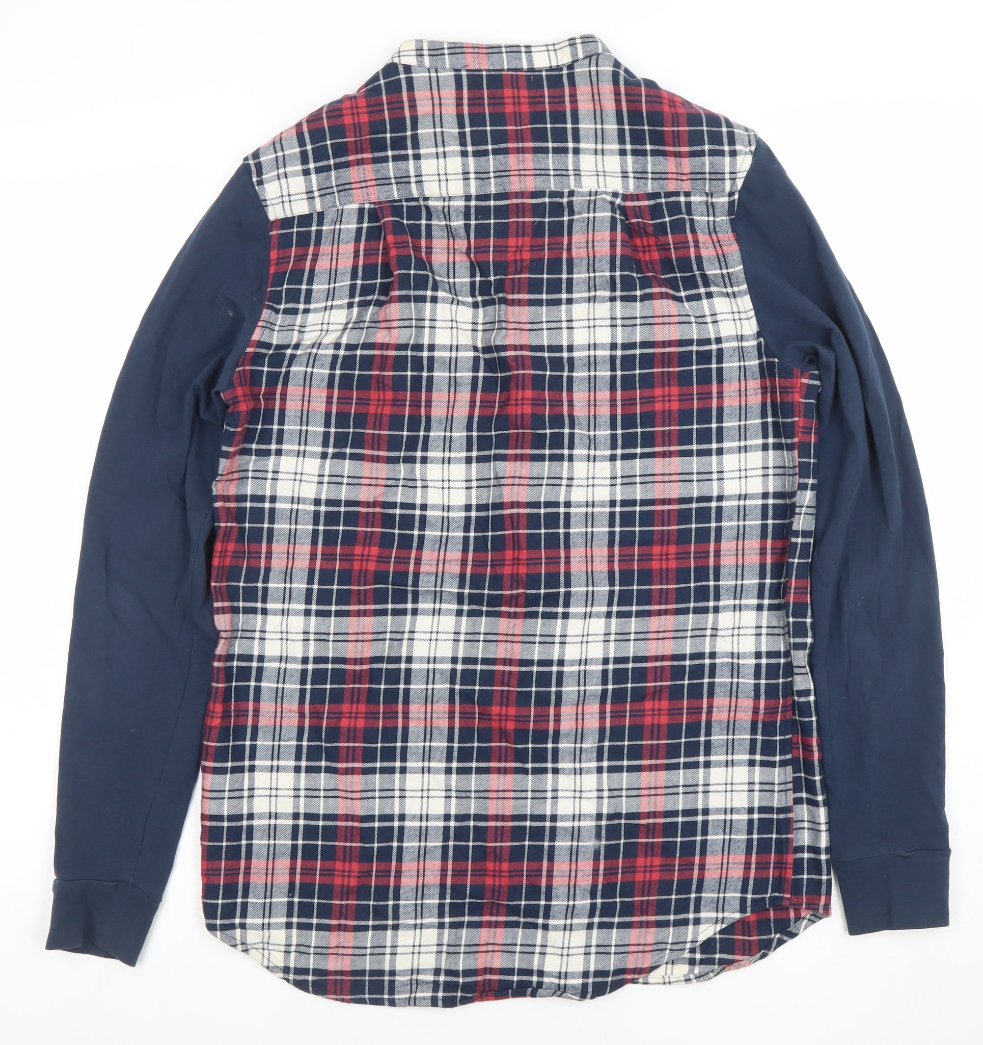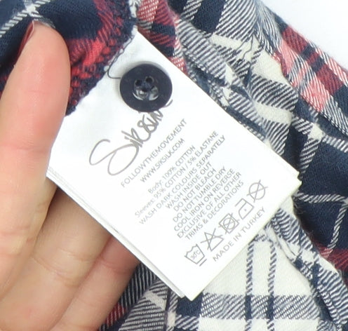SikSilk Men's Red Navy Check Button-Up Shirt Size S Classic Cotton
