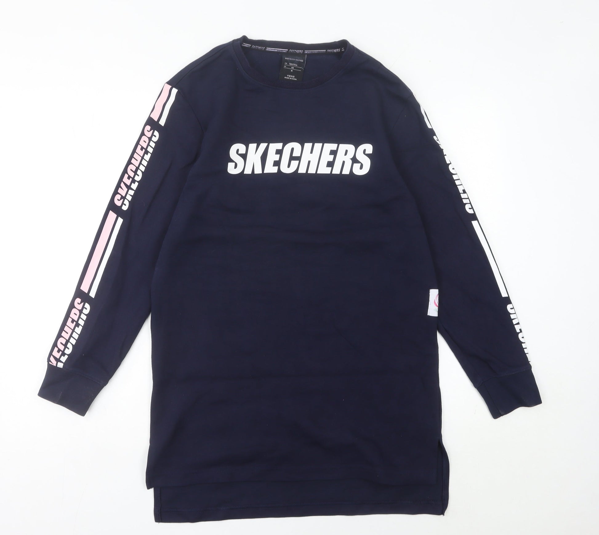 Skechers Women’s Blue Logo T-Shirt Dress Size 8 Casual Long Sleeve
