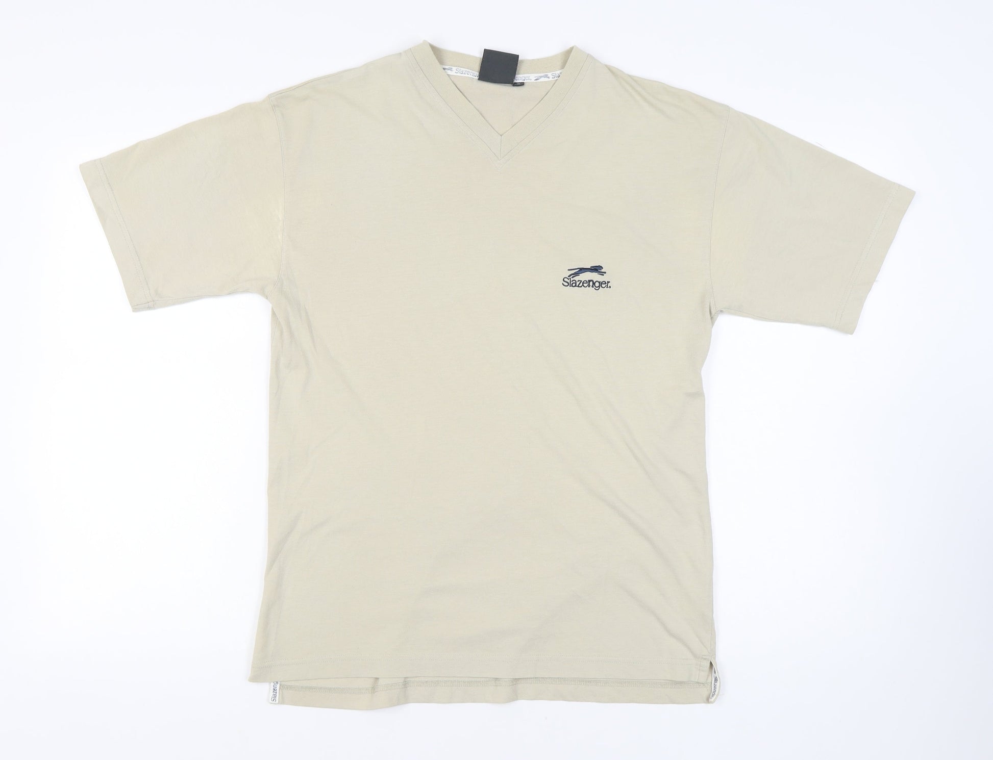 Slazenger Men's Beige V-Neck T-Shirt, Size S