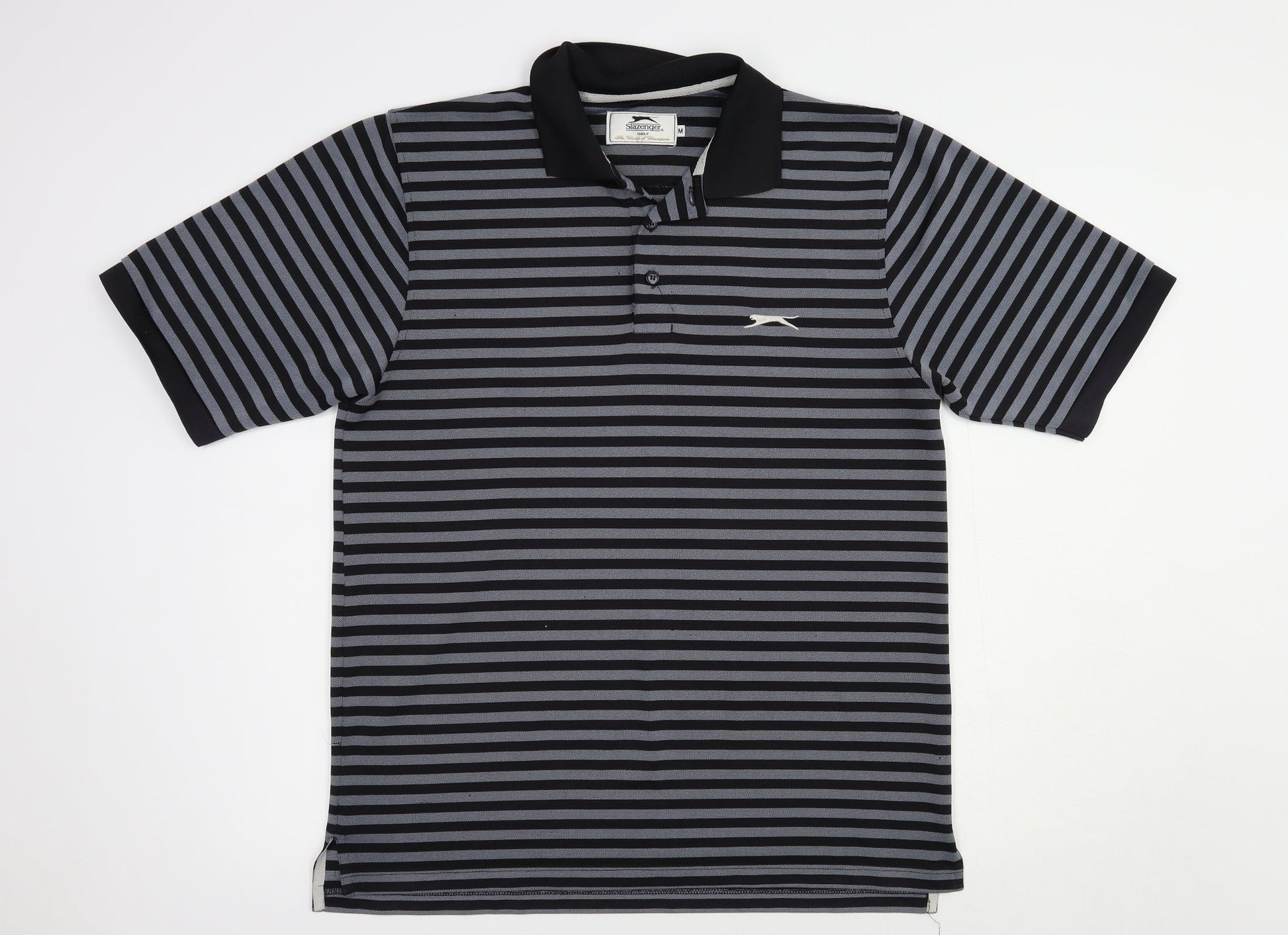 Slazenger Mens Black Striped Polyester Polo Size M Collared Button