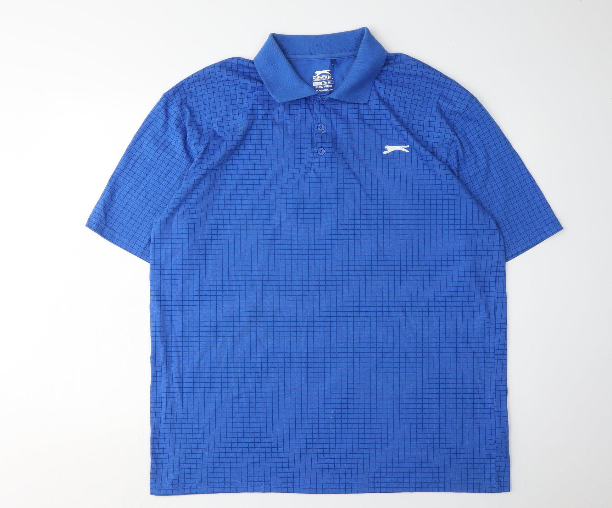 Slazenger Men's Blue Check Polo Shirt 2XL Casual