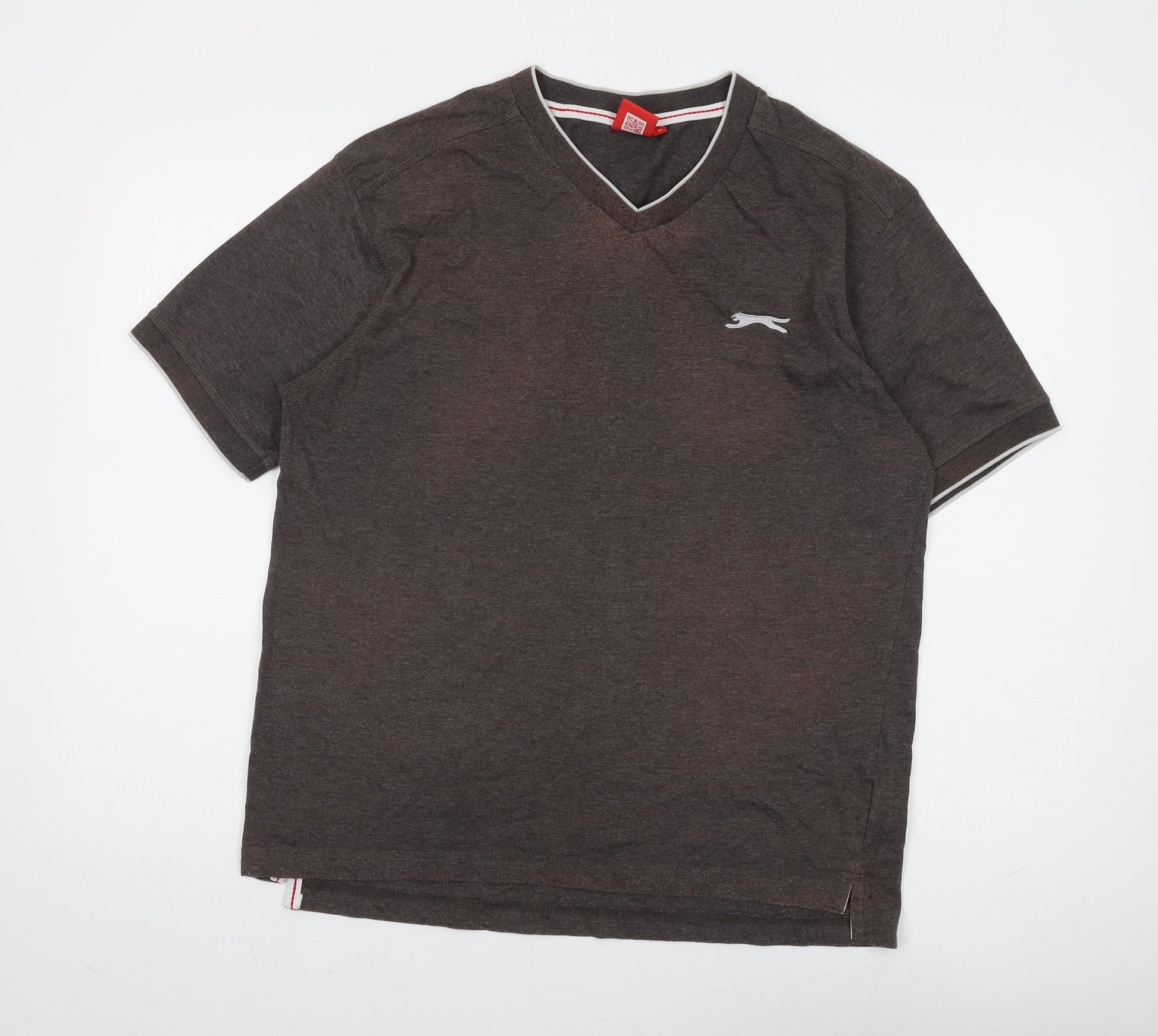 Slazenger Men's Brown V-Neck T-Shirt Medium