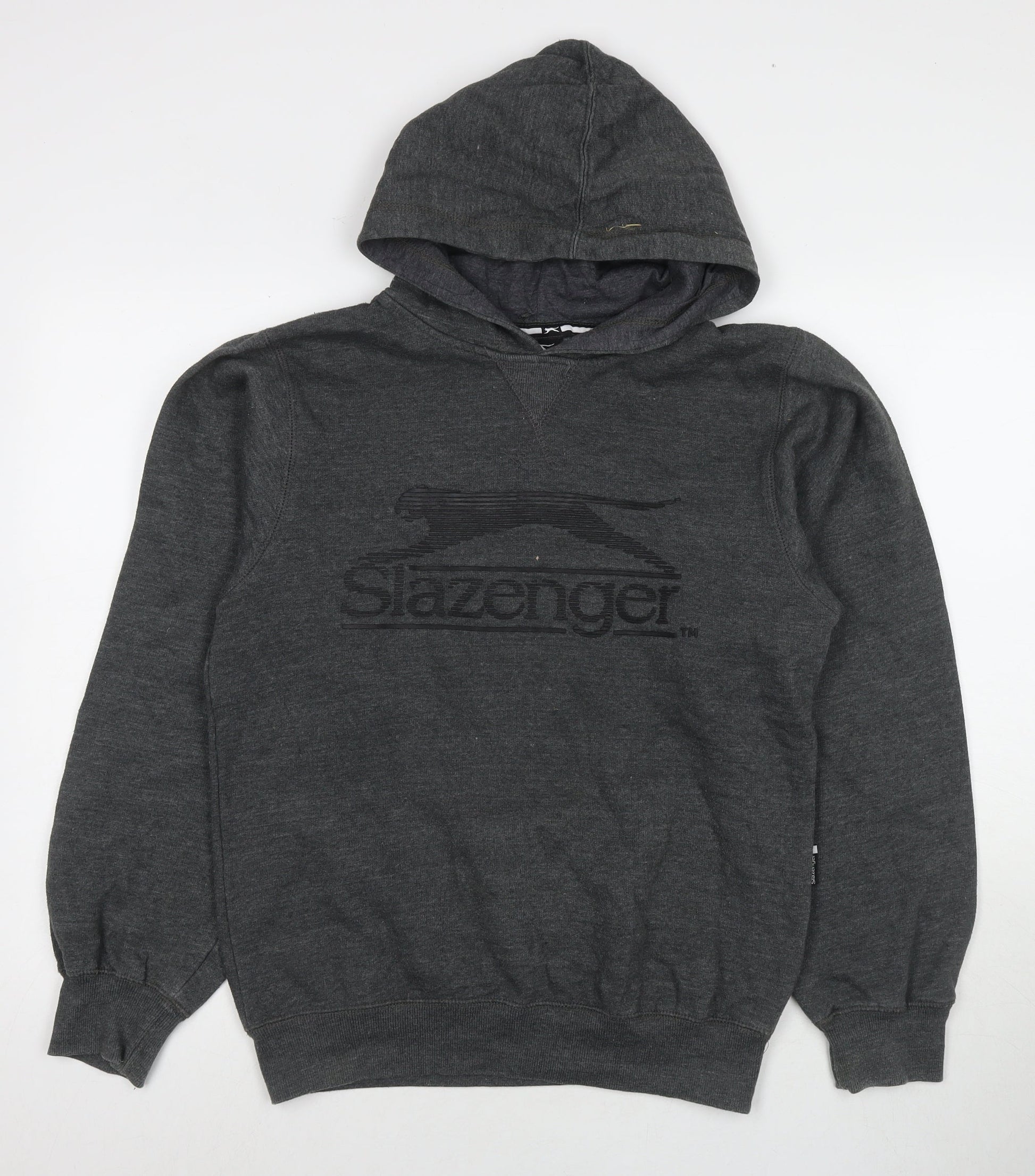 Slazenger Mens Grey Cotton Pullover Hoodie Size S - Logo