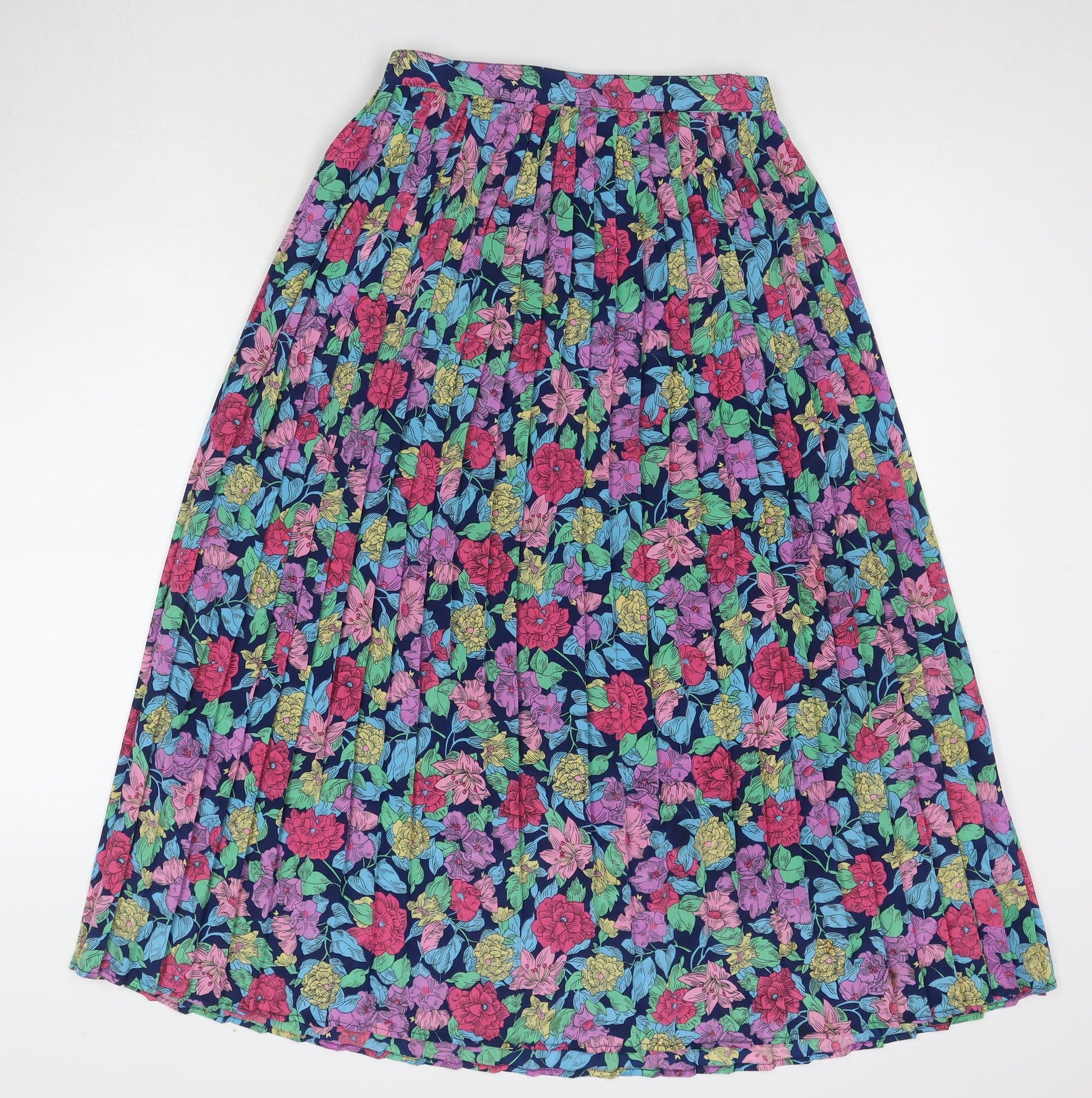 Solo Womens Multicoloured Floral Viscose Pleated Skirt Size 12 Zip